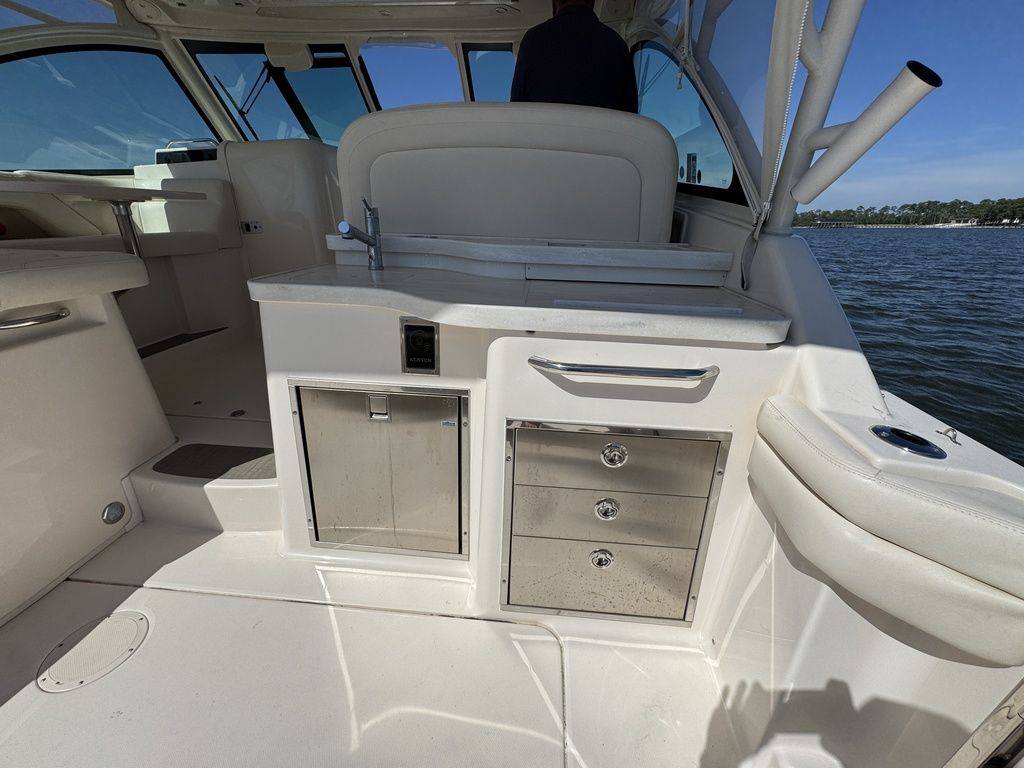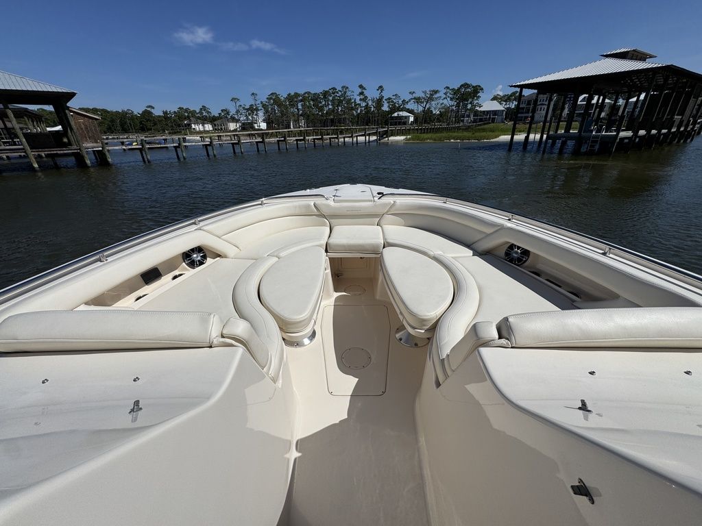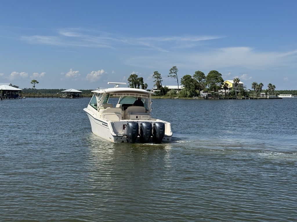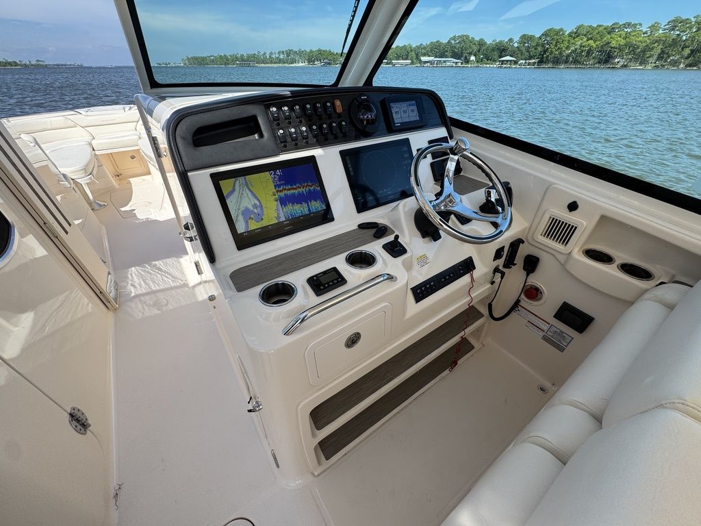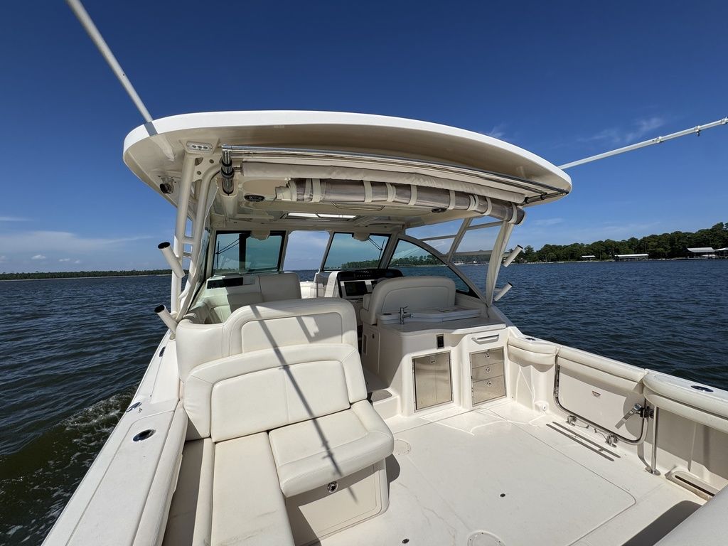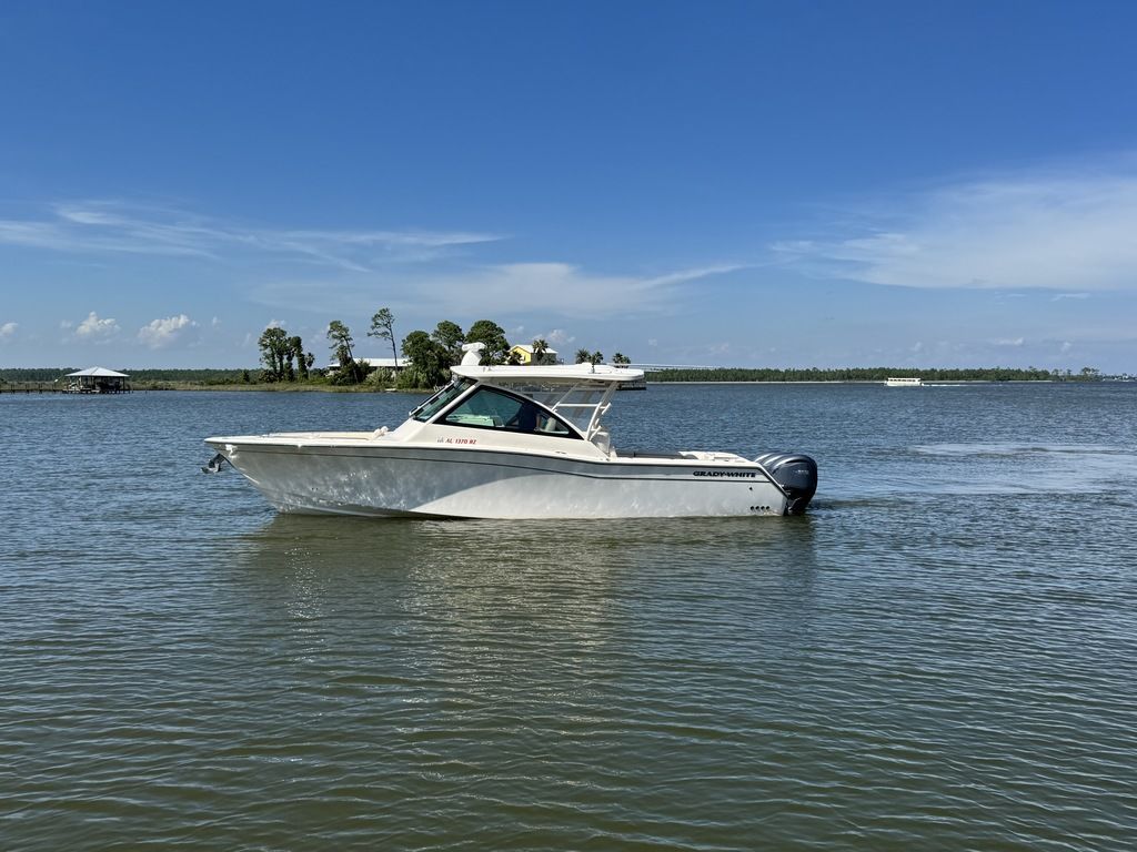 This 37-foot best dual console fishing boat incorporates a digitally controlled thermostat on the aft fish box, a 30-gal. livewell. Standard features that add to all-day comfort include the hardtop with AV²® enclosure, air conditioning at helm and inside console, and electronically sliding sunroof and SureShade® - each providing extra comfort on warm days. With Grady’s award winning SeaV²® hull, the 375 can seamlessly go from one water activity to another.