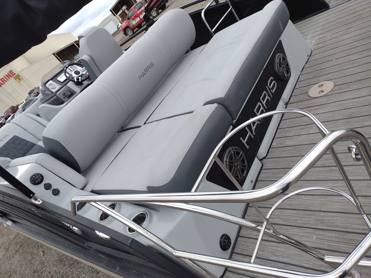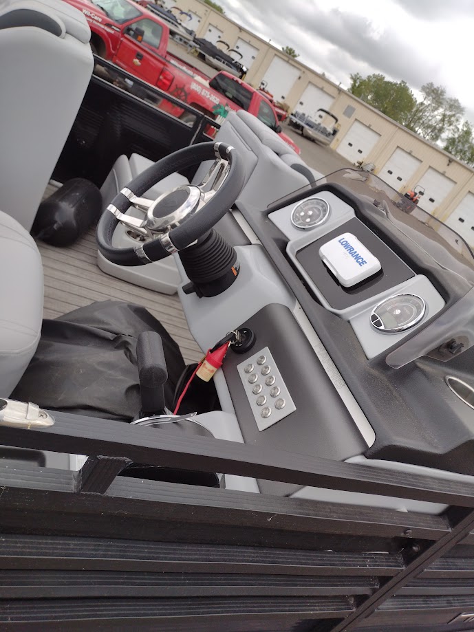 Clean premium pontoon with popular swing back layout and upgraded stereo!This is powered by a Mercury 115 ELPT CT four strokeTrailer in photos is not includedFor additional information call us today at 800-875-2620 and select the location nearest you