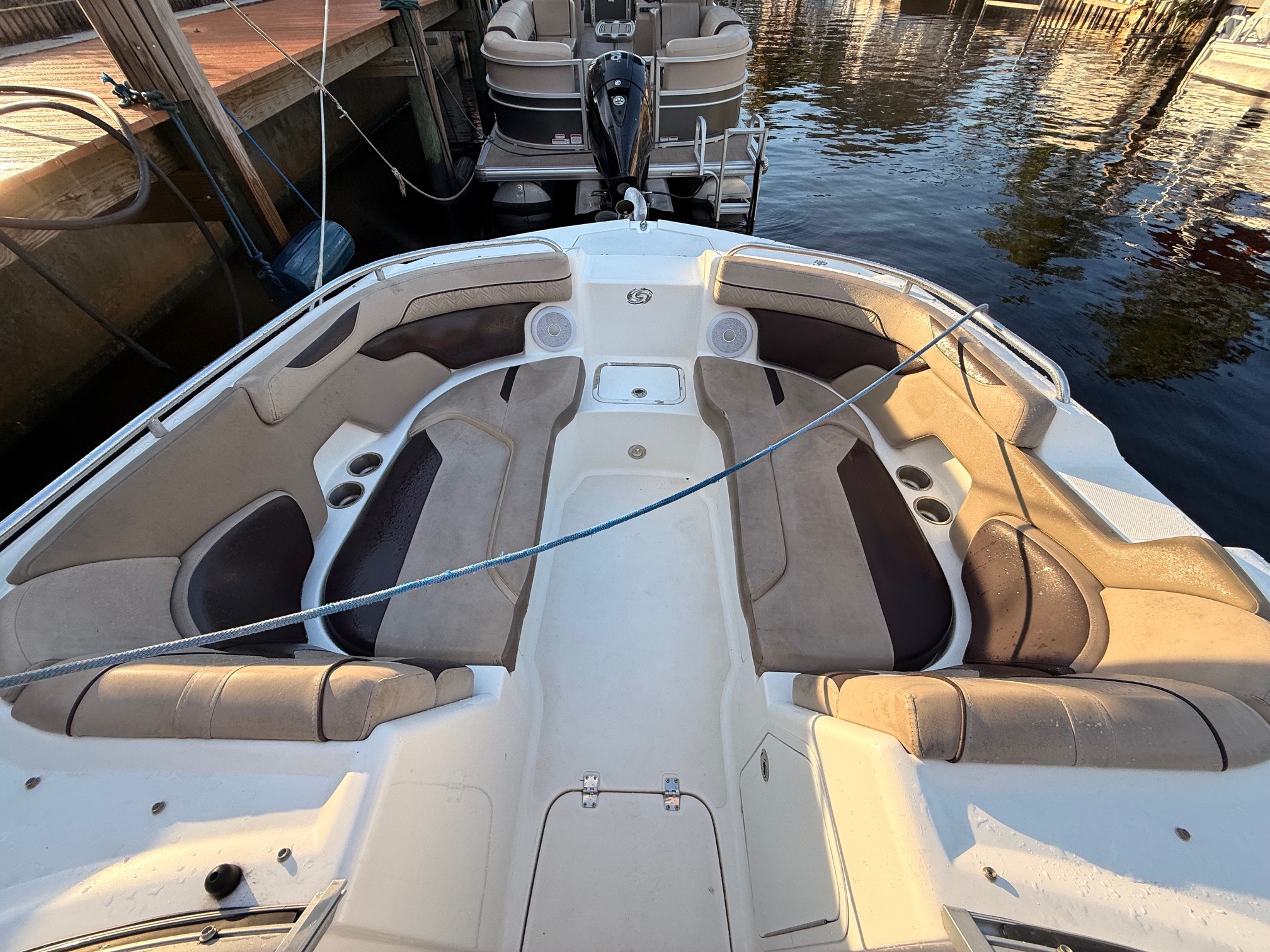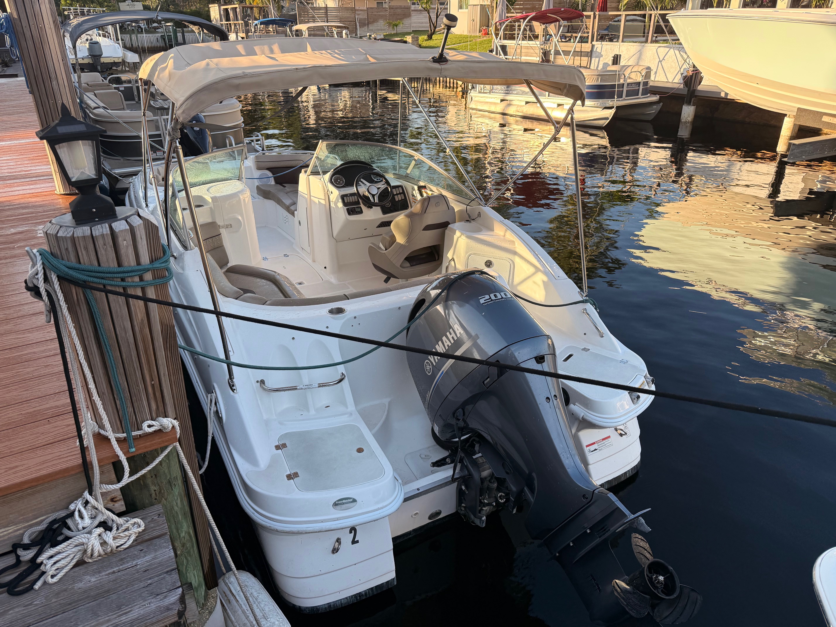 This vessel is designed to deliver an enjoyable boating experience with reliable performance. Its fiberglass hull ensures durability, while the single gas engine provides a smooth ride. Ideal for those seeking a dependable deck boat at an attractive price point.