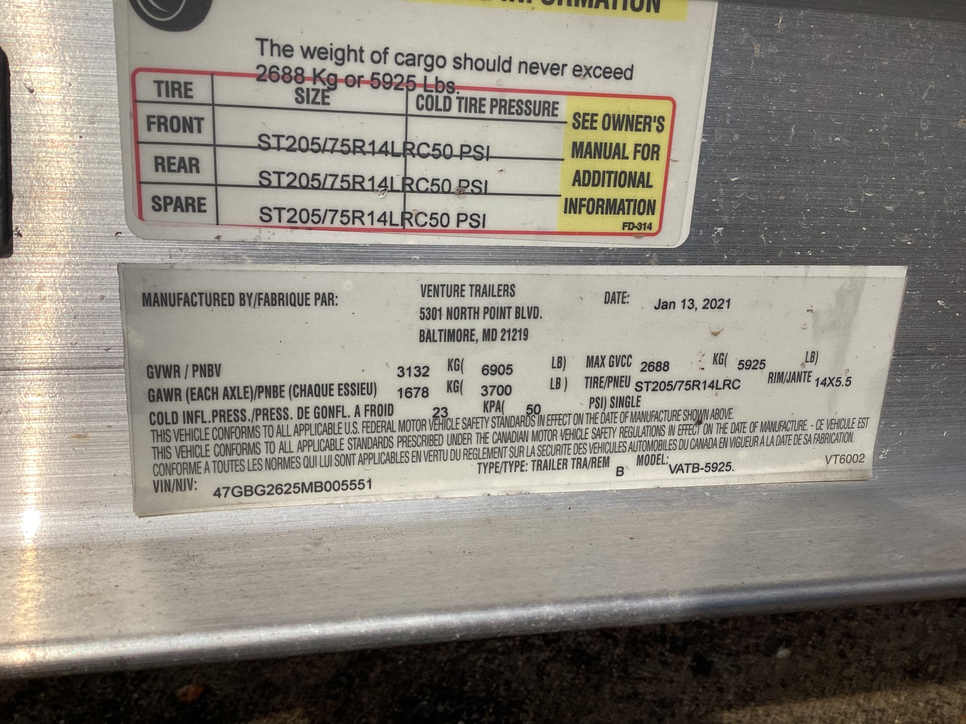 Venture trailer, dual axel with brakes.