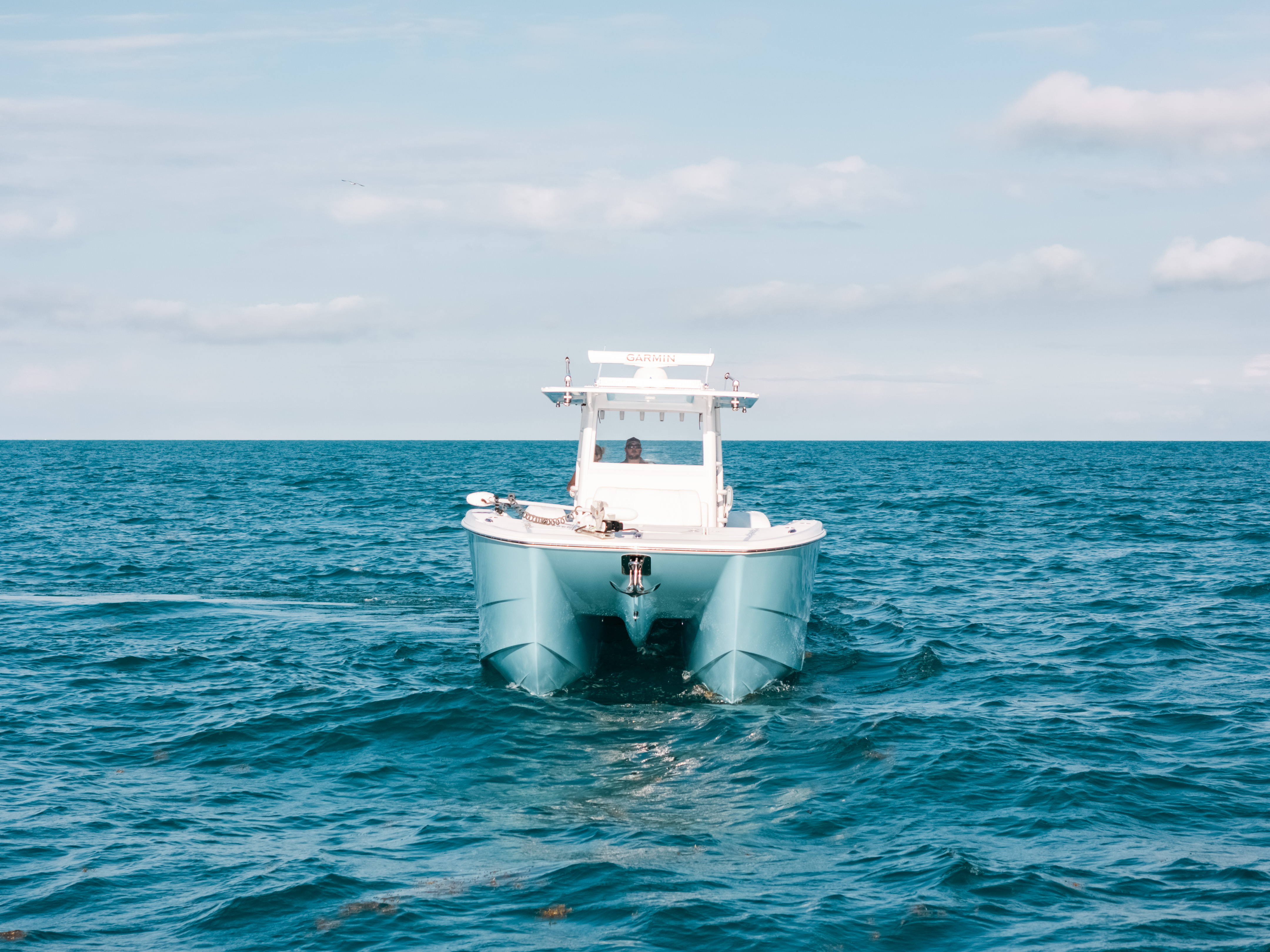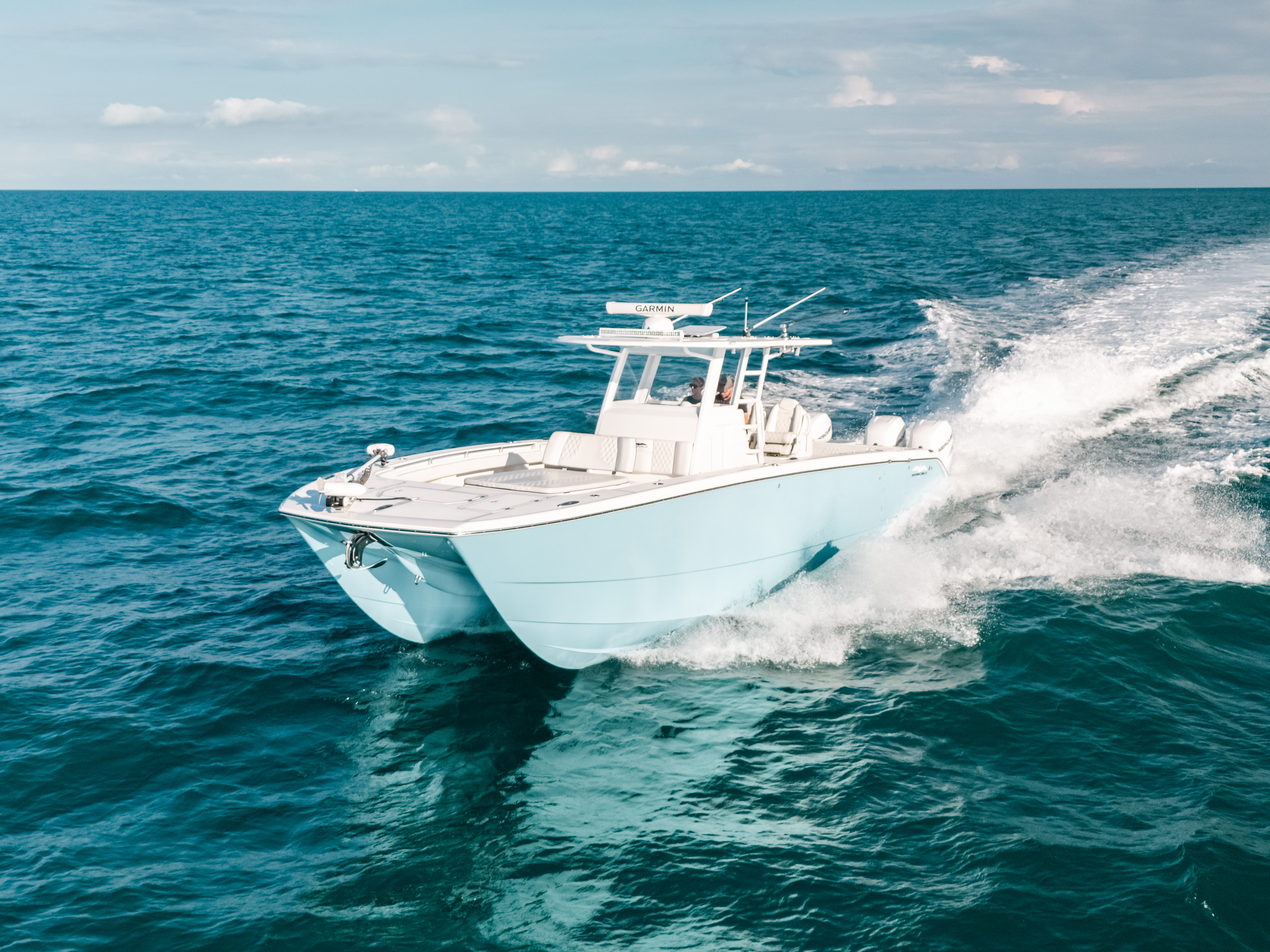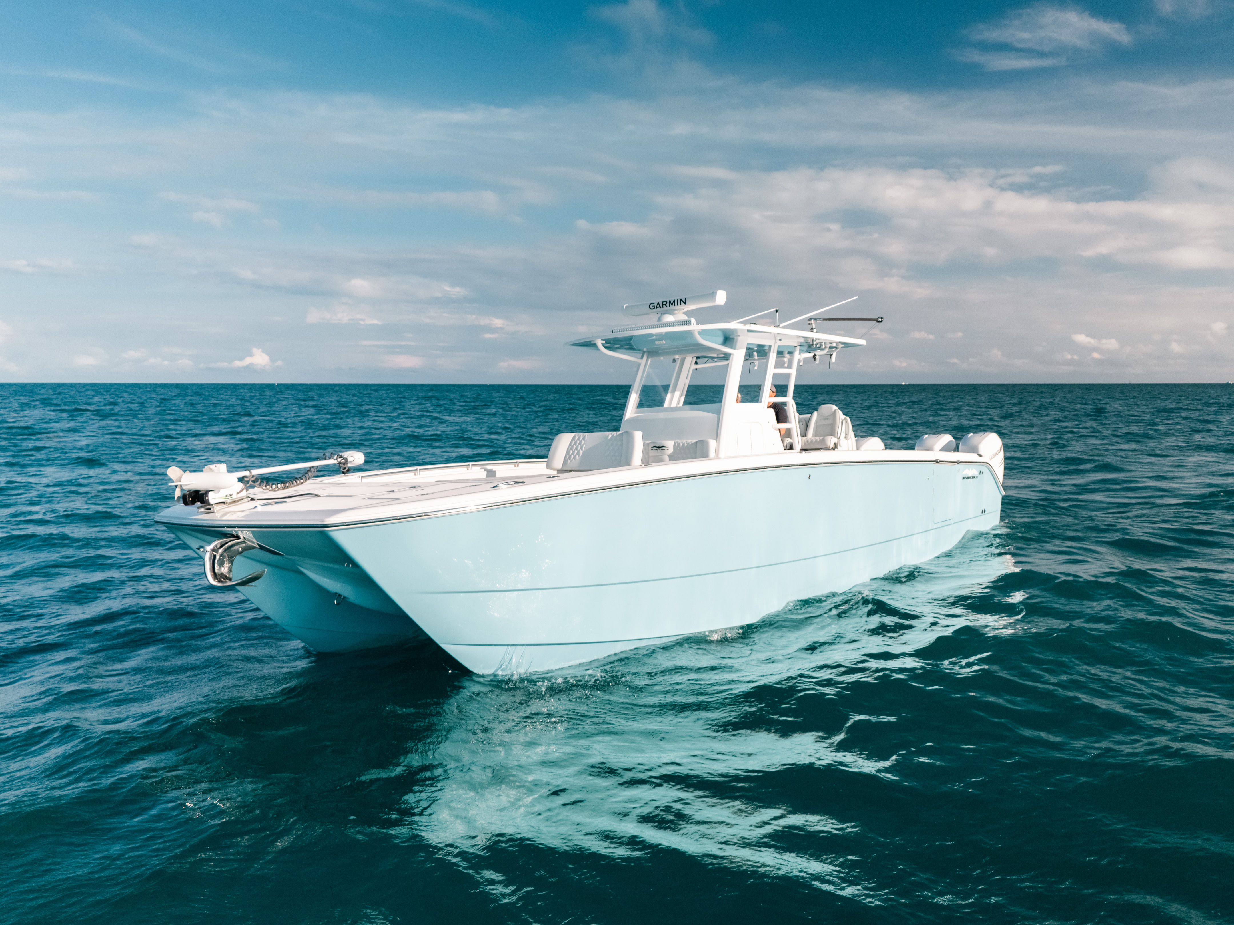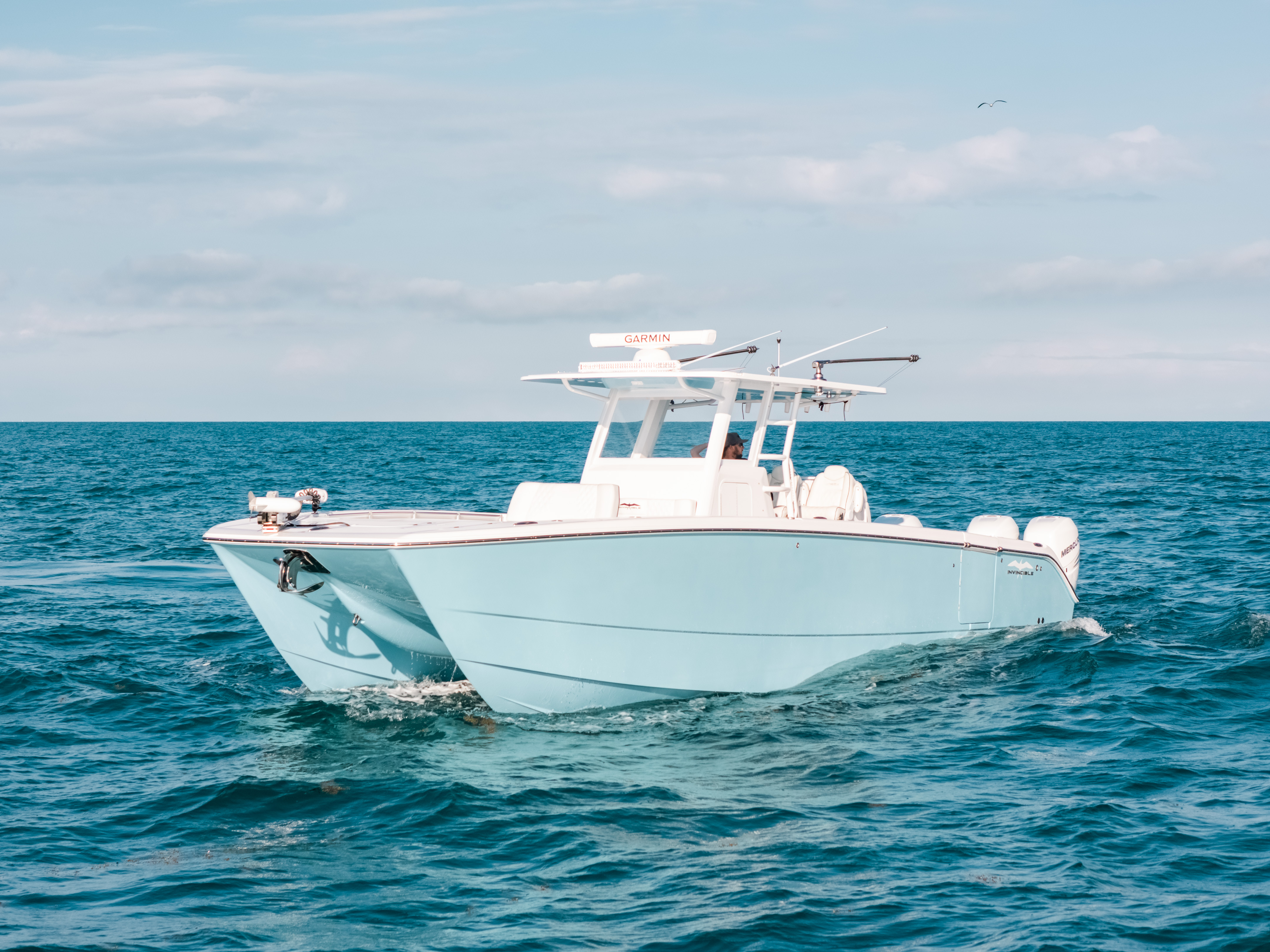 This boat was built to tear through seas from any direction, while still being able to maneuver turns at high speeds without the need to drastically reduce speed, a flaw on many presently made catamarans.