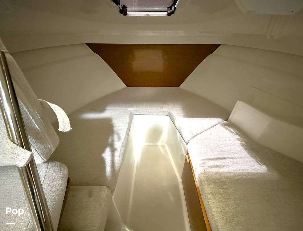 The forward berth on this 24-footer surprises with accommodations for up to four people, making it an ideal choice for weekends on the water. The layout is practical, inviting, and designed to keep you comfortable no matter the season.
