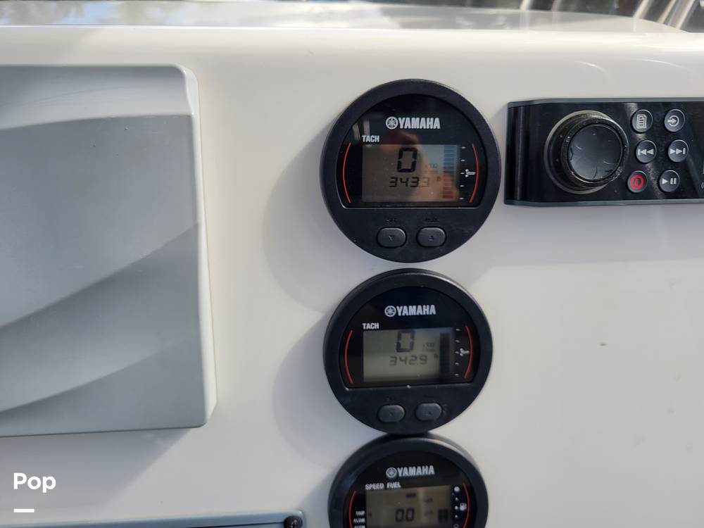 The boat is power matched with twin Yamaha 150 horsepower 4-stroke engines. They provide 3 MPG at 22 MPH and reach a top speed of 53 MPH.