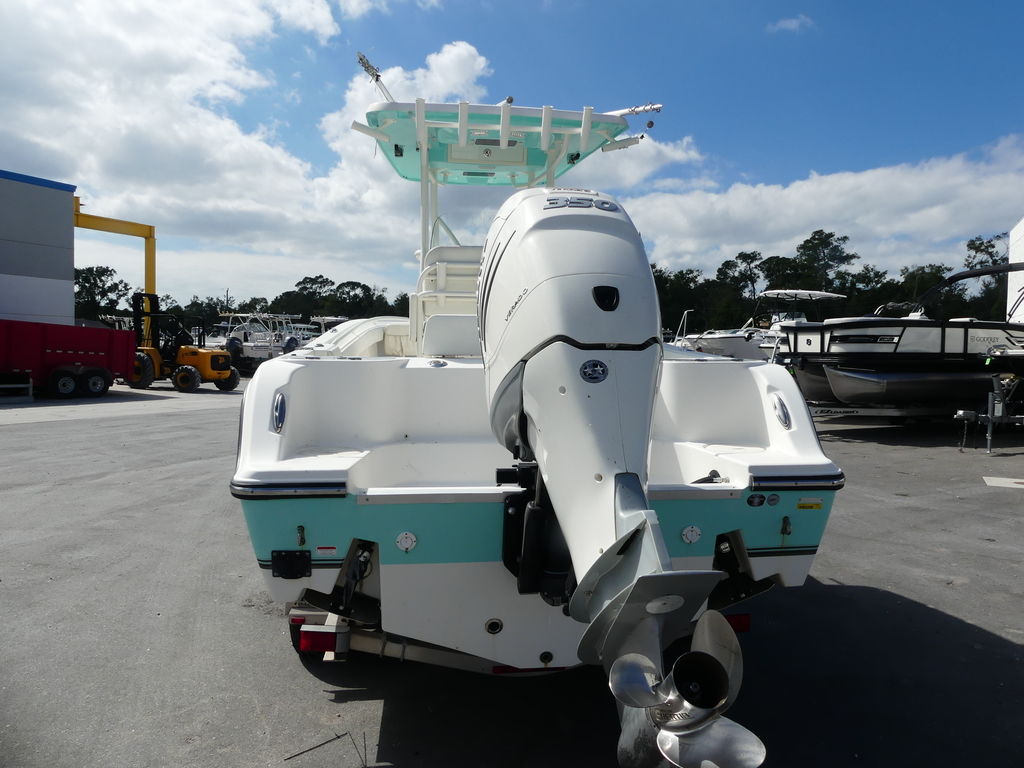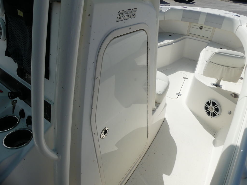 The MAKO® 236 CC is a versatile midsized offshore boat with a fine balance of creature comforts and hardcore fishability. Boat seating with removable backrests and drained storage beneath, as well as a center transom jump seat, keeps the family comfortable. Dual aft livewells and two 135-qt. fishboxes in the roomy aft area make fishing easy.