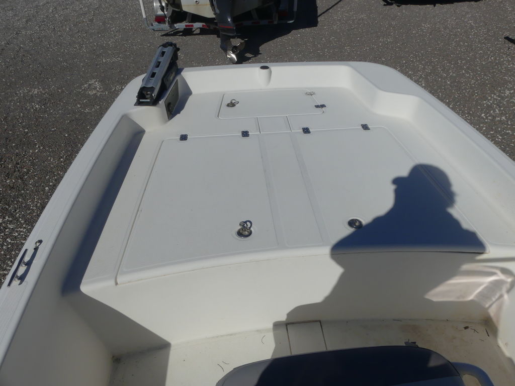 - Raised bow fishing platform w/patterned non-skid surface & lockable storage compartment