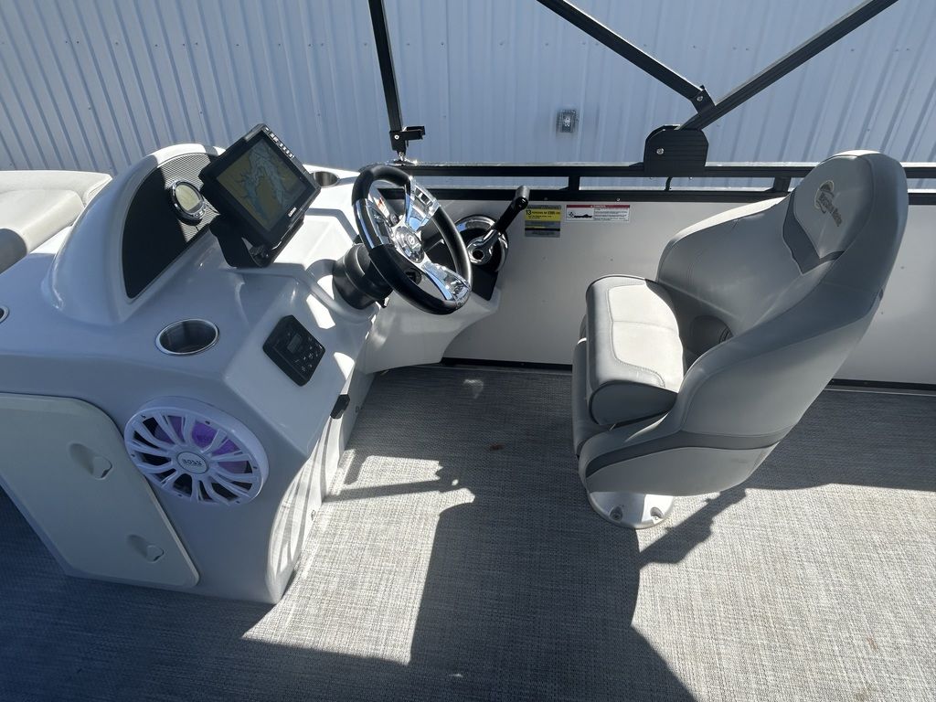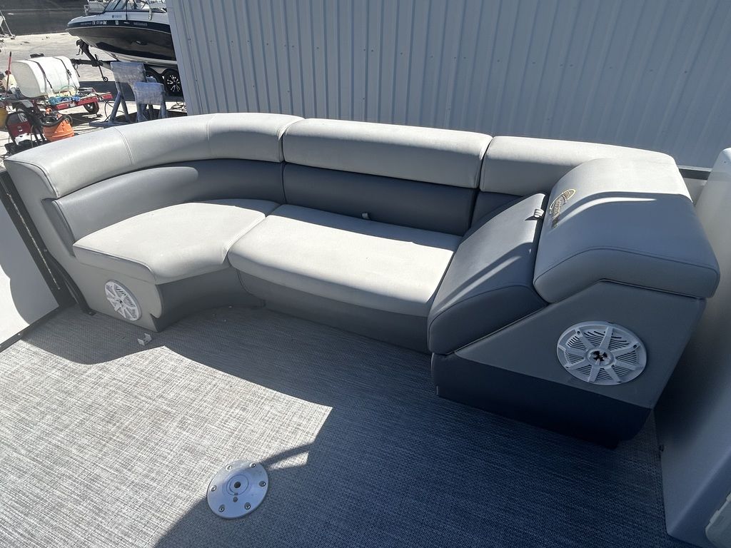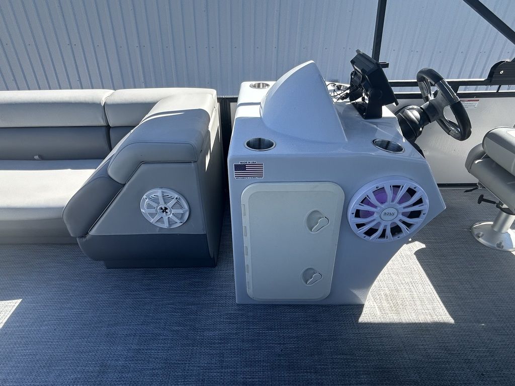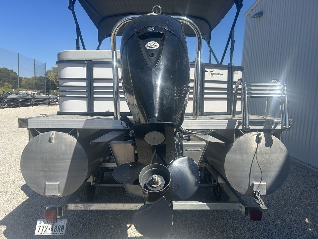 The 2021 Massimo P23 MAX is a 23-foot luxury pontoon boat manufactured in Garland, Texas, designed for day-cruising and watersports, featuring a Mercury Marine outboard engine, BOSS Audio sound system, ample seating for up to 11 people, and a shallow draft suitable for freshwater use. Specific configurations, like the P23-MAX Limited Edition, include features such as a pop-up changing station, RGB lighting, and a full boat cover.