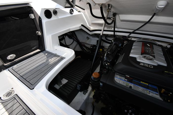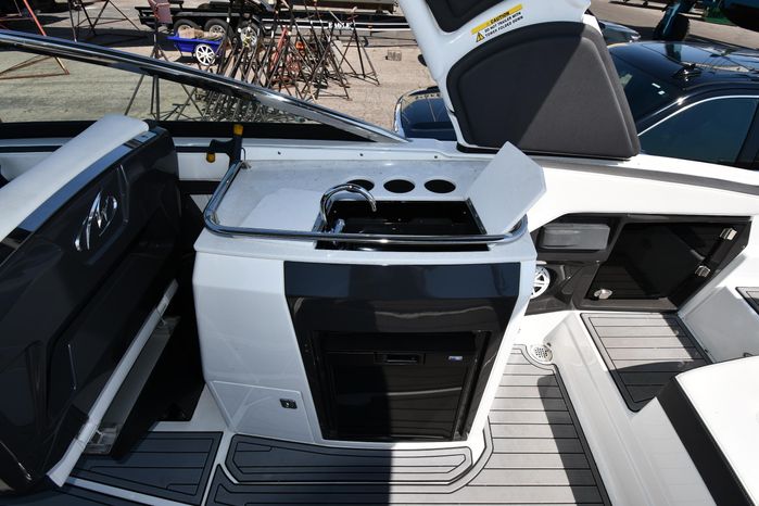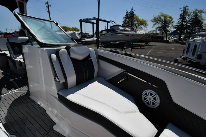 Broker Notes: Whisper grey hull color, freshwater wash down, Sea Blaze LED underwater lights, swim platform / cockpit Sea-Dek. Inside rack stored when not in use (heated winters). Note - name on side of vessel is a sticker and is easily removable. ***Extended Engine Warranty!!