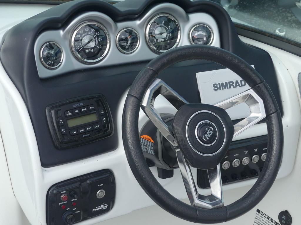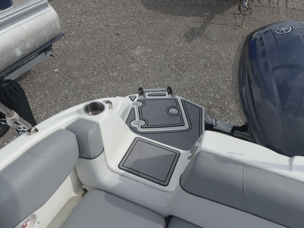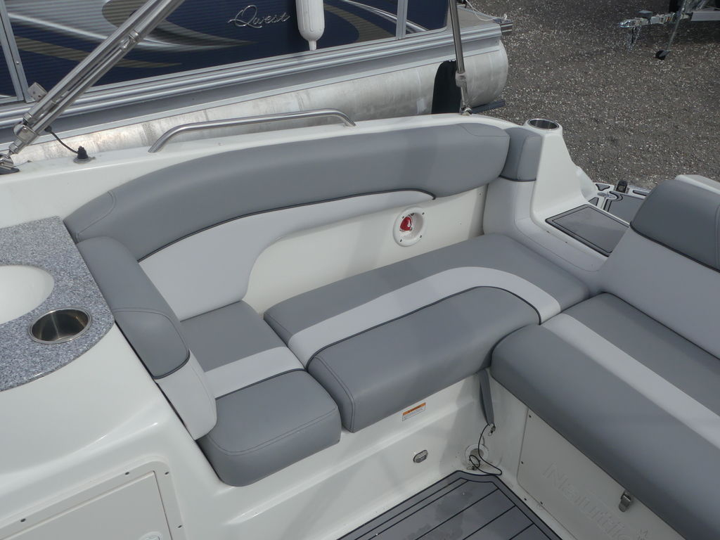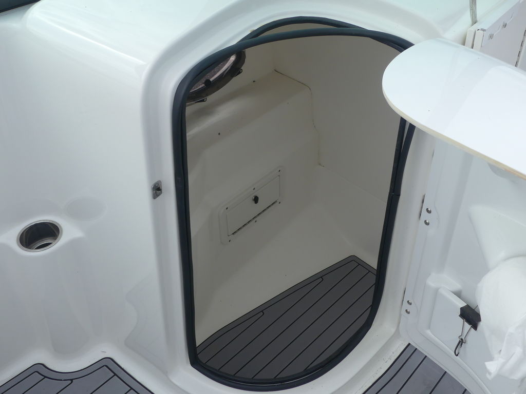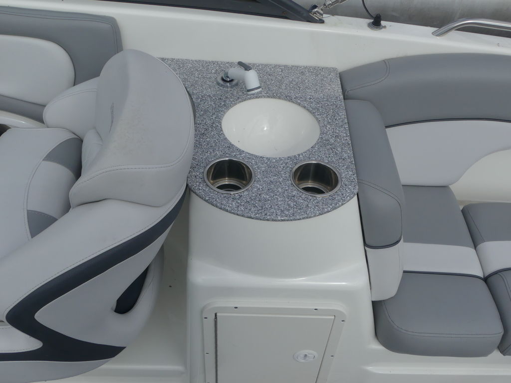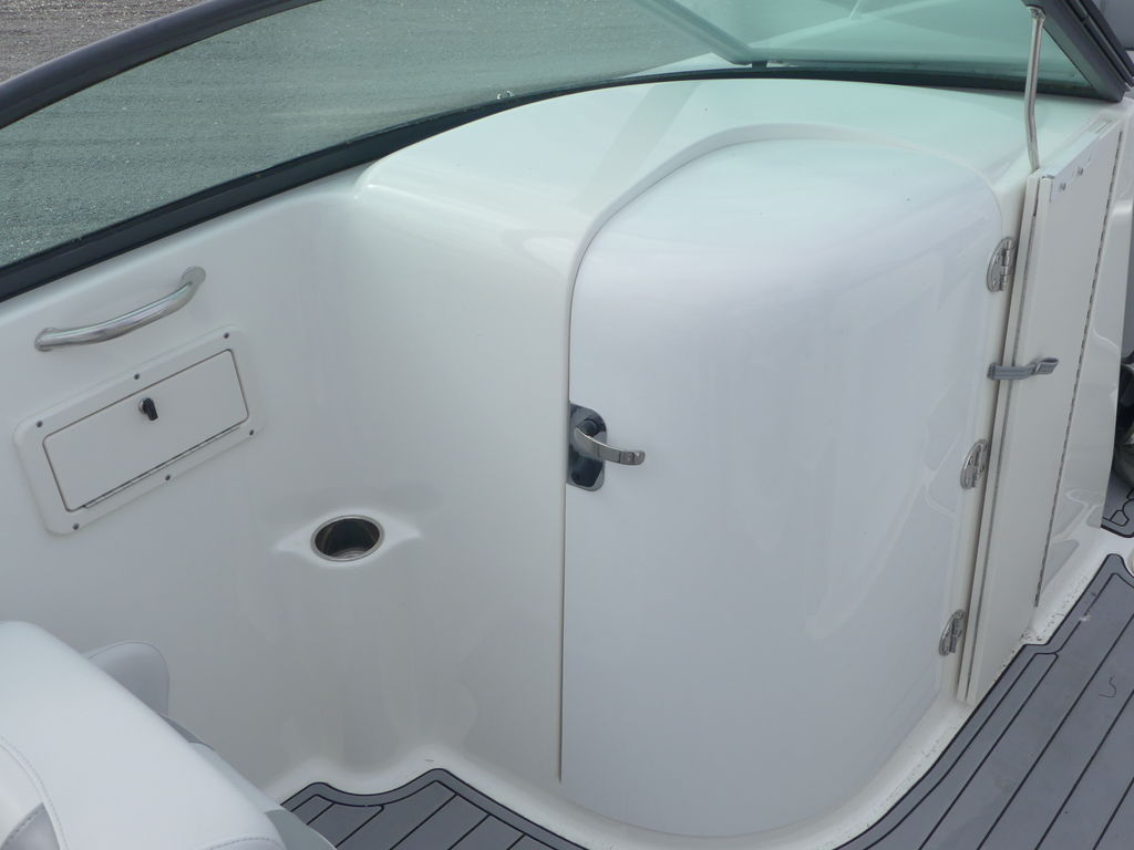 Step aboard. The 243 DC is the perfect combination of size and functionality. It offers an enclosed, step-down dressing room with optional portable head; wraparound seating in the cockpit; and a pressurized water system that services the galley with an optional transom shower. Plush seating bolsters the cockpit and bow with a transitional sun pad and easy-locking storage. Two bucket seats at the helm make way to the panoramic walkthrough windshield. Bow and transom landings offer access to the water for swimming and diving.
