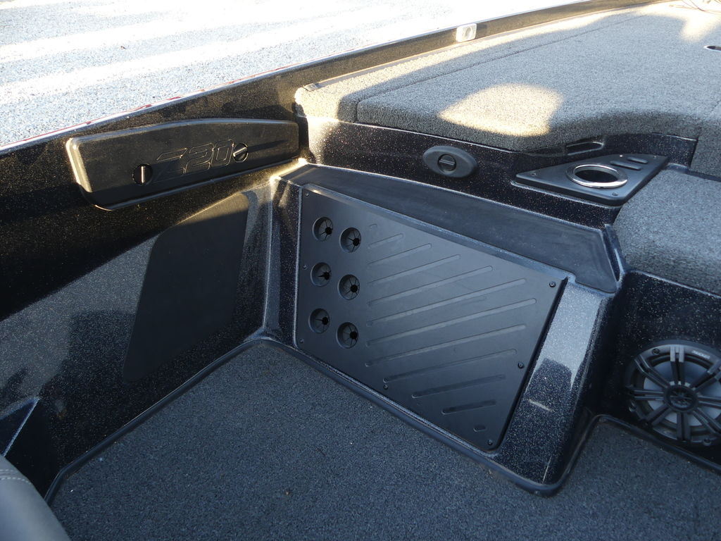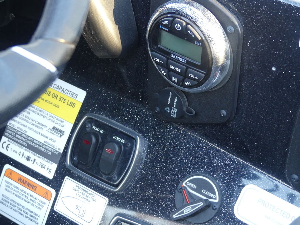 Electrical- Angled bow panel w/trolling motor receptacle, anchor/light switch, trim switch & capability to flush mount most 12" (30.5 cm) fishfinders