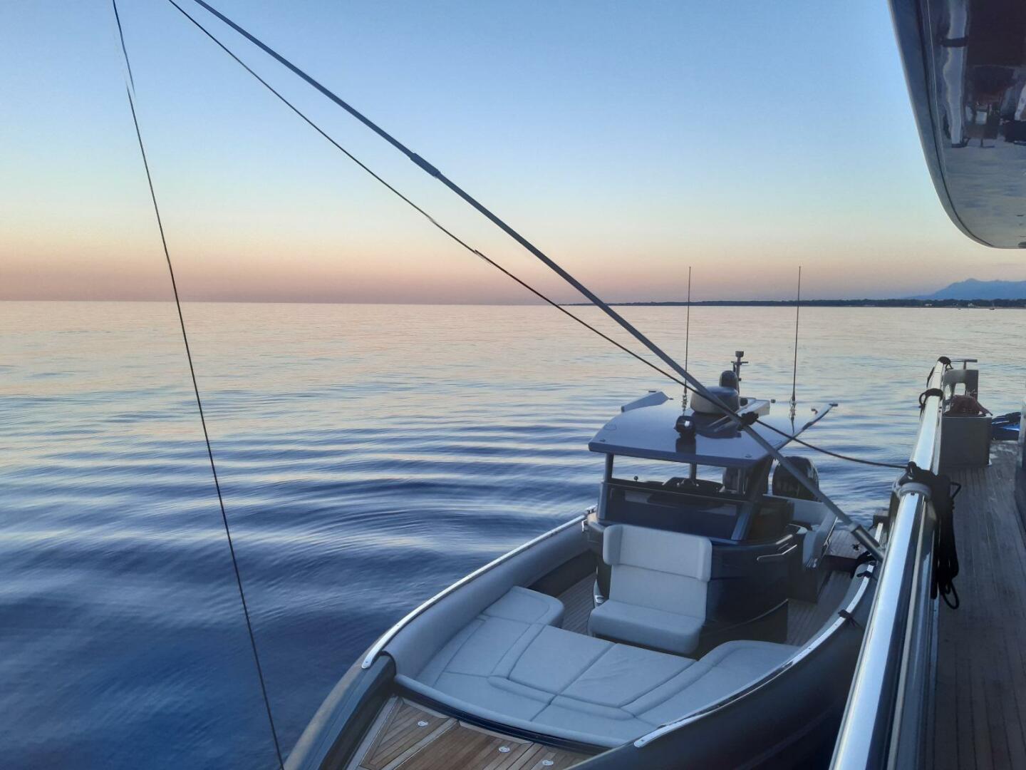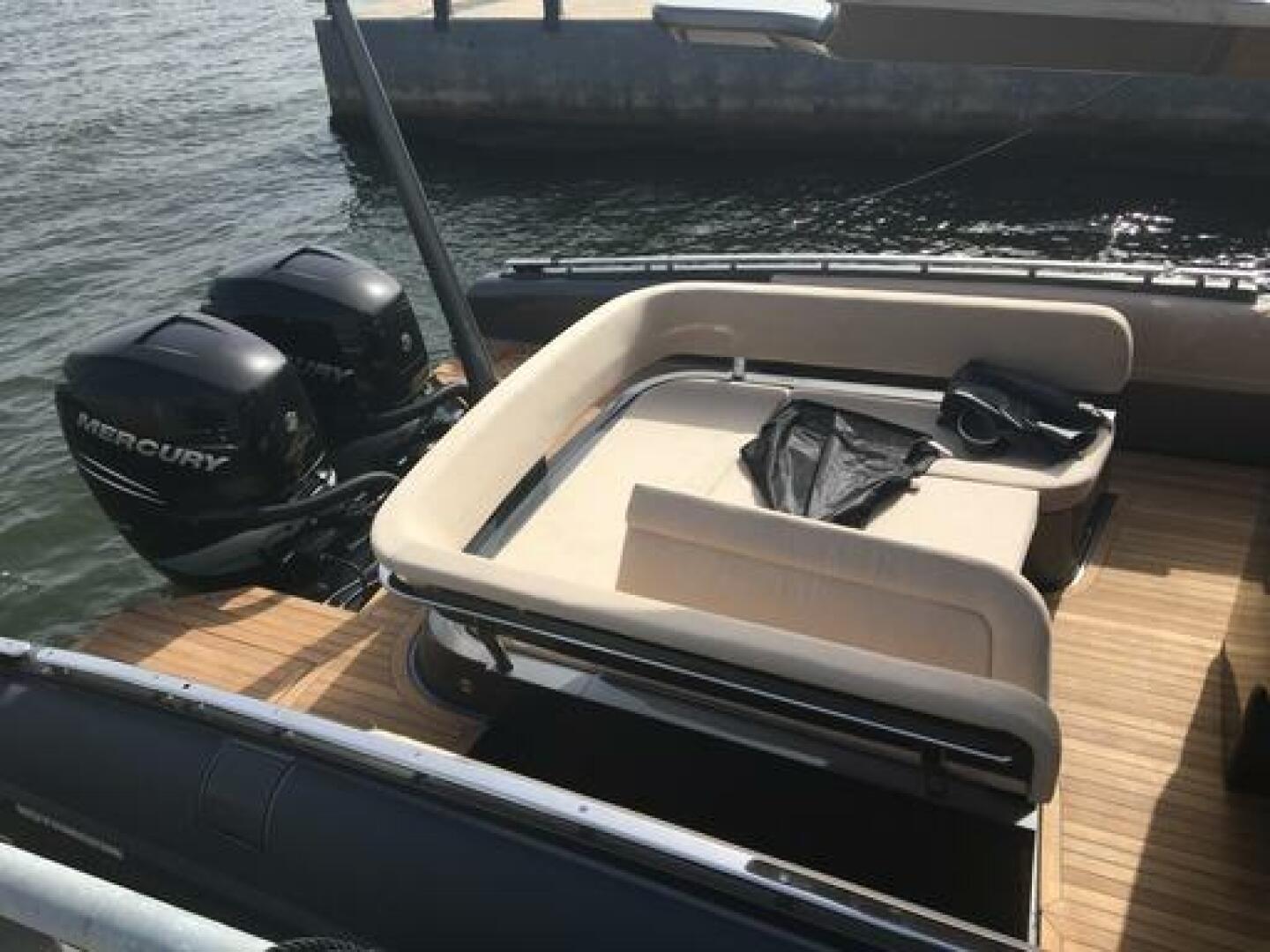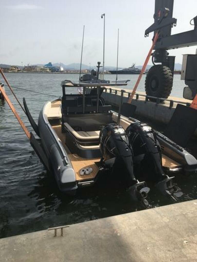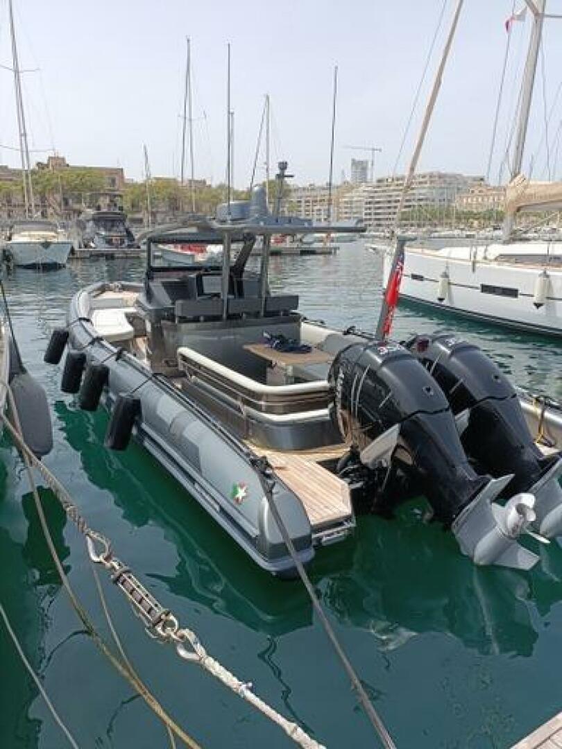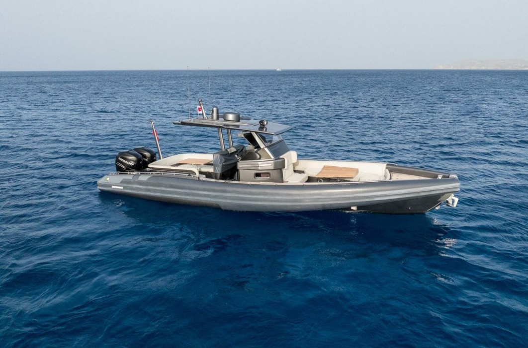 Black Shiver line is the flagship of Nova marine manufacturing: a complex product dedicated to whoever is looking for the best of technology, design and functionality.Last uniqueness, but not least in order of importance, the tubes used for the entire Black Shiver line use a special shock-resistant rubber foam that is resistant to punctures and does not deflate thus offering greater safety and stability and allowing a larger interior space because of its semicircular shape. Everything is controlled from a console which is the quintessence of technology.The Black Shiver 100 combines elegance, performance and flexibility of use. The distinctive features of the 100 are beauty, high quality of materials used, speed and safety.Such a luxurious and high-tech maxi-tender will blend perfectly with any large luxury yacht. The Black Shiver 100 combines elegance, performance and flexibility, making it perfect for long rides and daily use.With a high-tech and elegant design, it fits any mega yacht thanks to the customizations available. This inflatable boat offers reliability and safety even in rough sea conditions, ensuring unparalleled comfort. Equipped with two 350 Mercury Verardos, its hull is tested to ensure optimal performance in every situation, transforming every boat into a unique and exciting experience.Deck accessories designed make it comfortable and pleasant, ideal for both sailing and relaxing at anchor. At Nova marine, they know that true greatness is not measured in meters. The BS 100 embodies this philosophy: it is proof that compact dimensions can offer emotions and performance comparable to those of larger boats.The hull was obtained with water lines capable of facing the sea formed in absolute safety and without ever giving passengers excessive sensations. Among the fittings, another thing we appreciated is the toilet inside the deck structure that also houses the bridge, a small room that also offers a sink and the space to change and take a showerThe black livery goes very well with the teak of all walkable surfaces, also highlighting the excellent quality steels used both for the bollards and for the handrailsOn this model, the windshield, thanks to the folding upper part, gives the driver and co-pilot the opportunity to adjust the ventilation of the driver's seat in a very efficient way.As far as the dashboard equipment is concerned, the shipyard has selected products of excellent quality well integrated with the instruments and maneuvering devices of the Mercury. Even the systems are made with care, everything is arranged in professional order and clearly identifiable in its functions.The most striking thing about this rib is the ease of conduct at all speeds, also thanks to the electronic throttles of the Mercury that allow millimetric throttle controls. The hull never breaks down and never beats, it always maintains its trim and its course.OPTIONS AND FEATURESSide-Power Bow thrusterDeck in solid teakBow converting tableStern converting tableFull Carbon Hard-TopManually foldable windscreenPolished stainless-steel anchorPolished stainless-steel anchor chainStern Maxi FlagpoleAdditional stern swim ladderRefrigerated thermal lockerBow towing system on 3 pointsLifting system with ringsInstall handrail on driving console for co-pilotPair of side teak step on the tubeRemovable bow ladderCHARGEMASTER battery chargerLumi shore Supra SMX53 underwater lightsAdjustable searchlight installed on the T-TopUpgraded audio system JL MARINEGarmin Electronics Package:Garmin touchscreen display GPSMAP® 8412Fixed VHF 315iEcho sounder moduleGarmin AIS 800 TransceiverFlir Thermal Camera IP M332Ray marine Radar antenna patch E92142Cover for bow couchCover for stern couchCover for seat front part of the driving consoleCover for drivers' seatsCover for helm instrumentsBow sunshadeStern sunshade