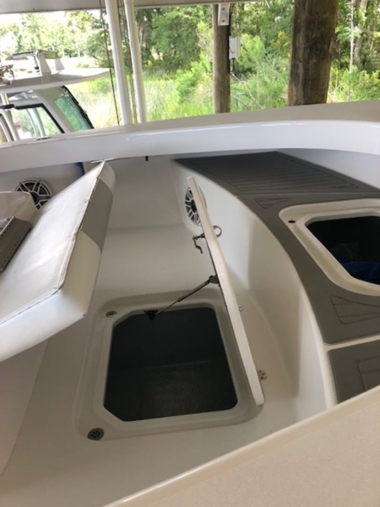 -T-Top White powdered coated frame with light grey hard top with 3 black oak spreader lights and 1 black oak light bar