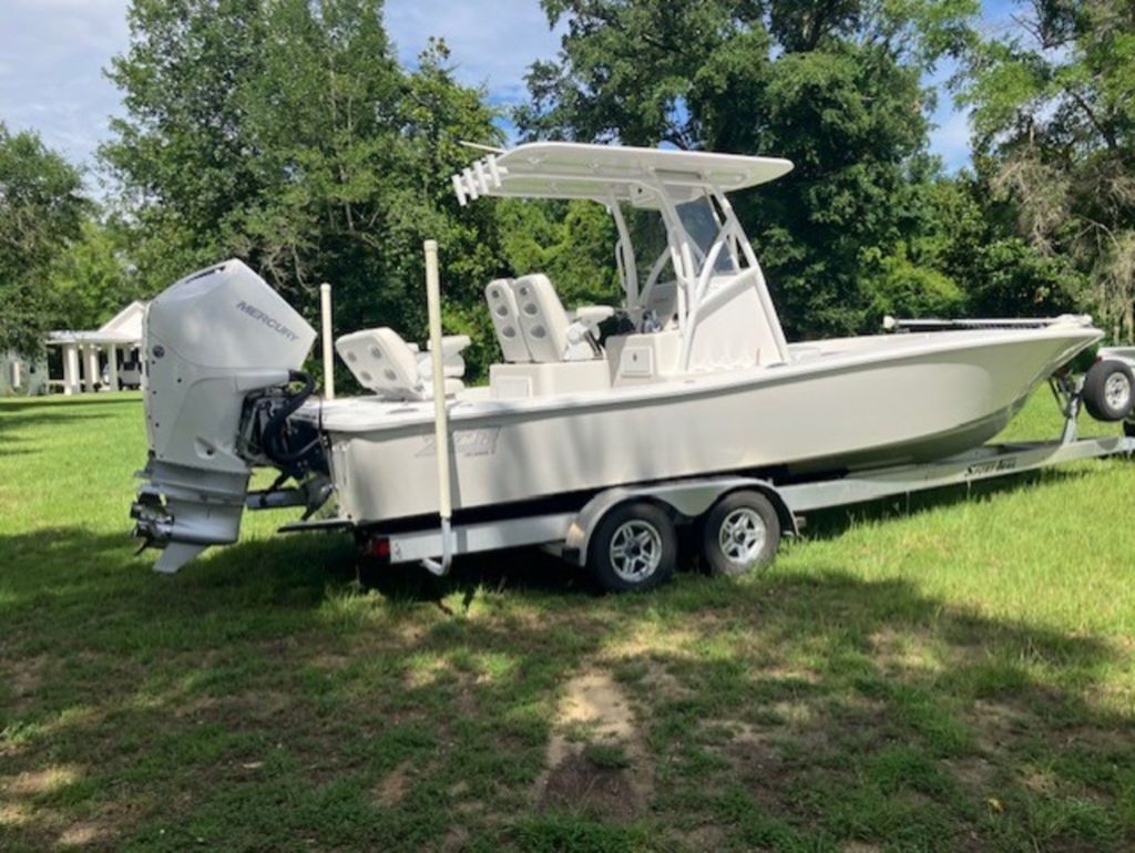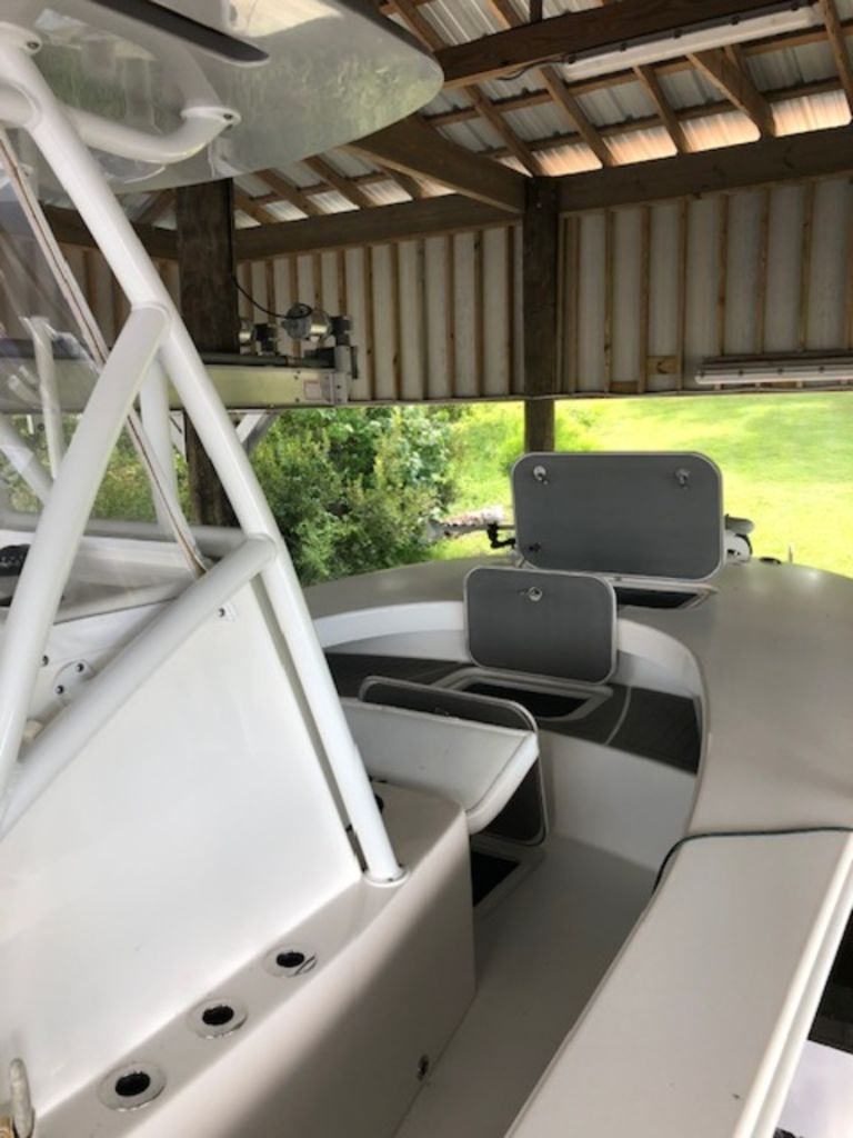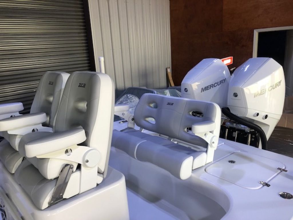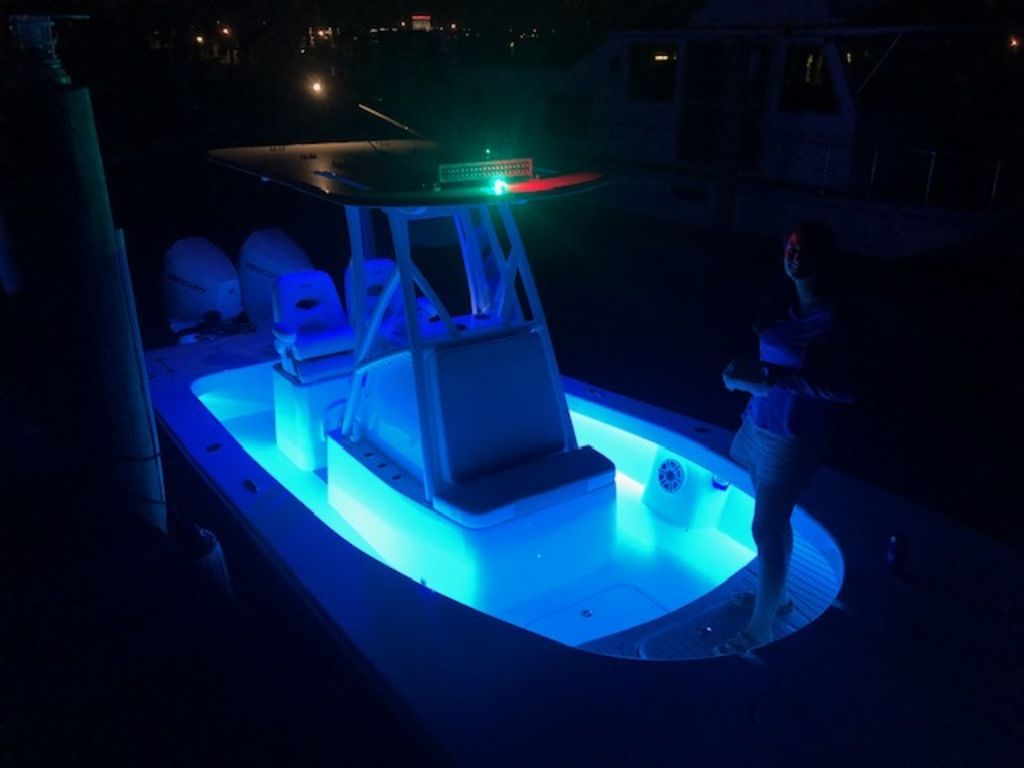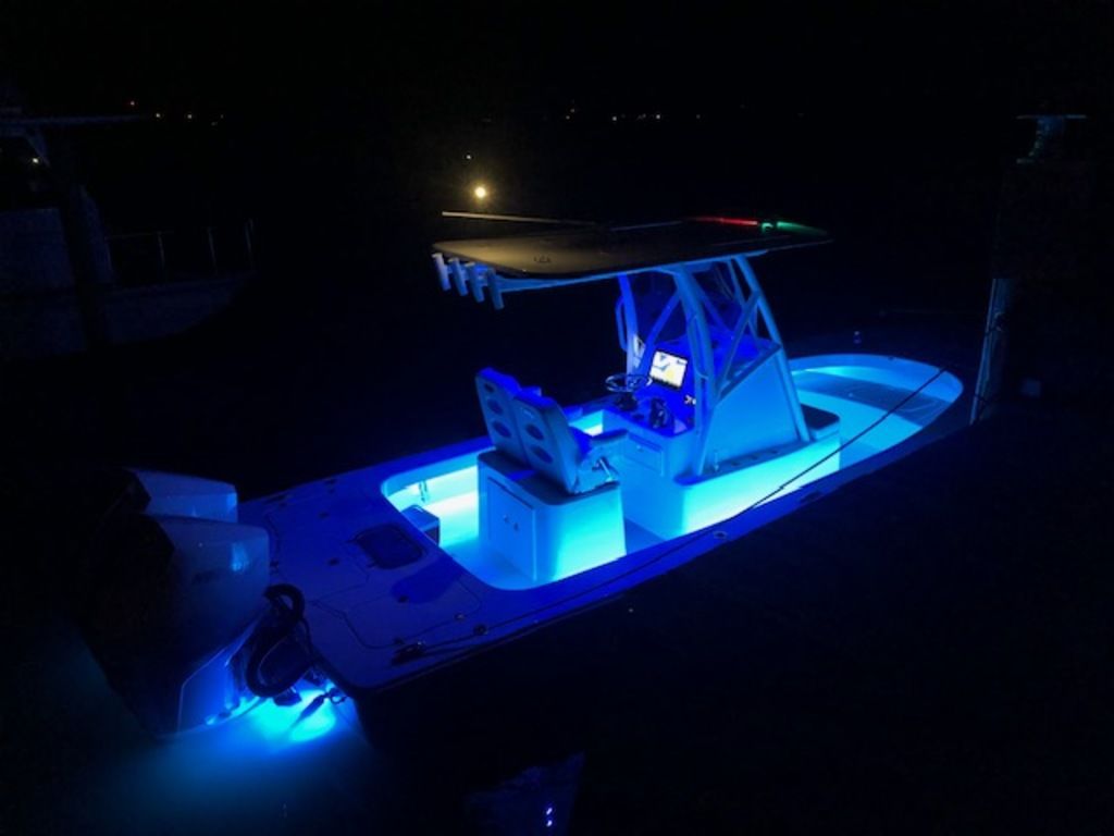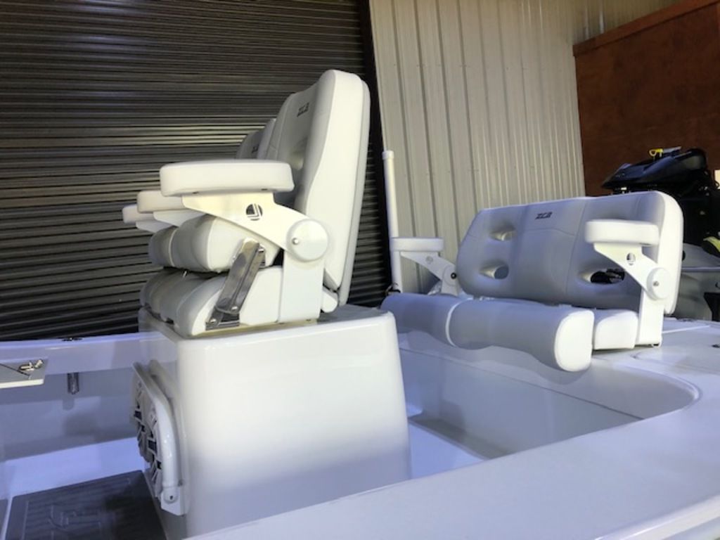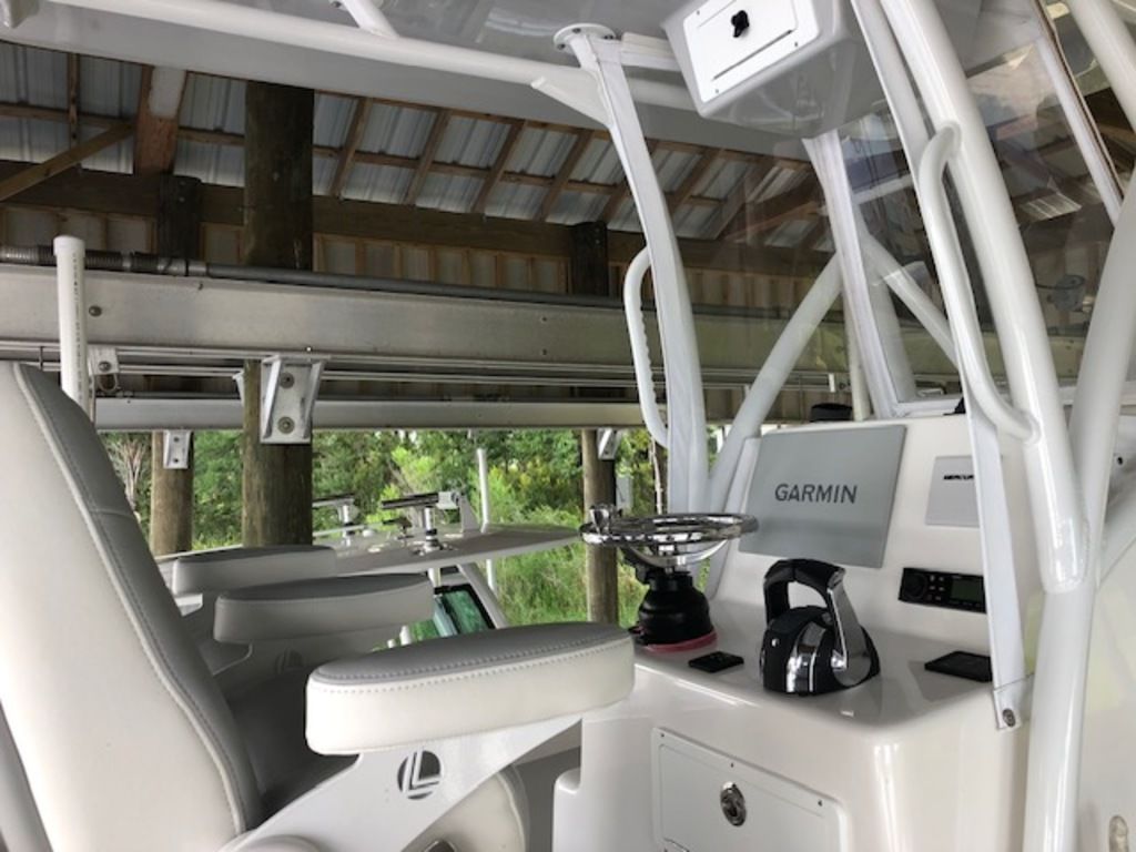 -T-Top White powdered coated frame with light grey hard top with 3 black oak spreader lights and 1 black oak light bar