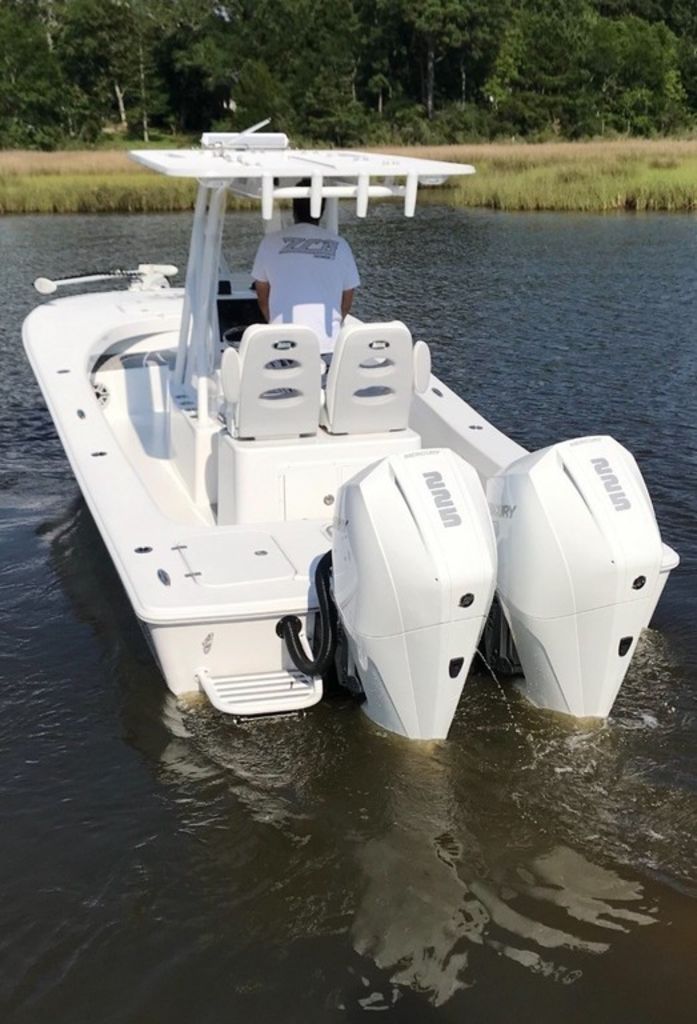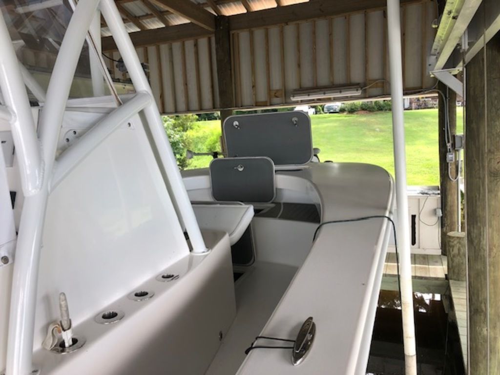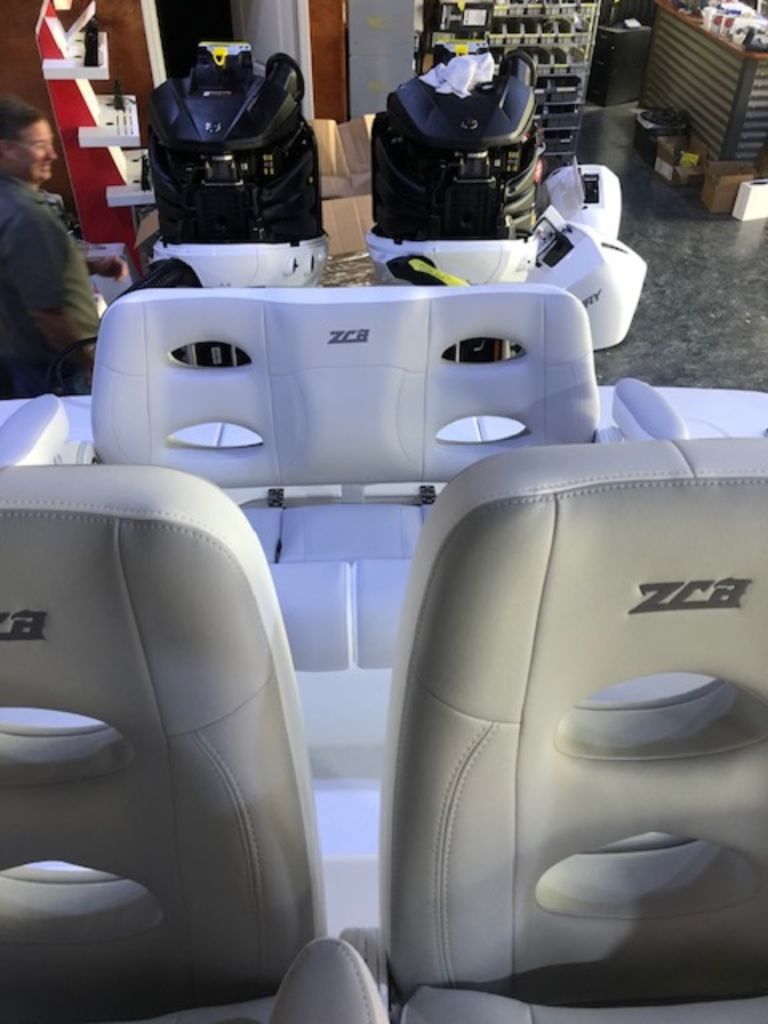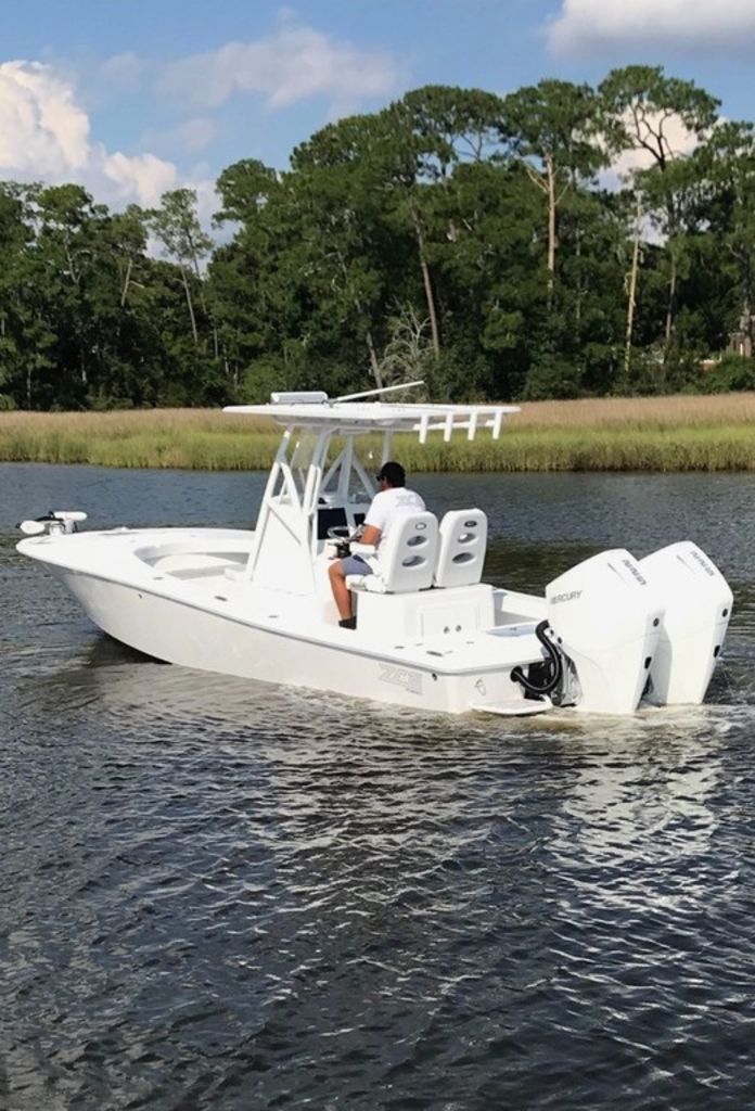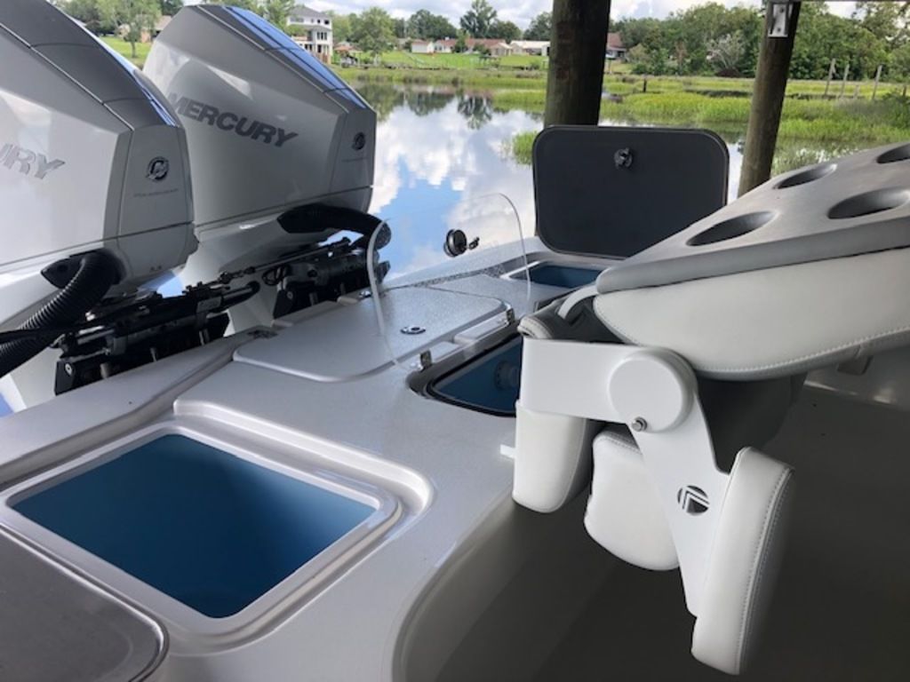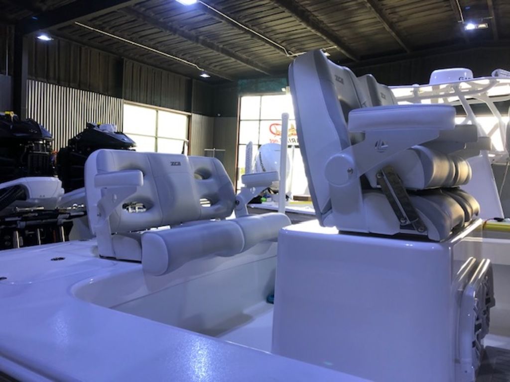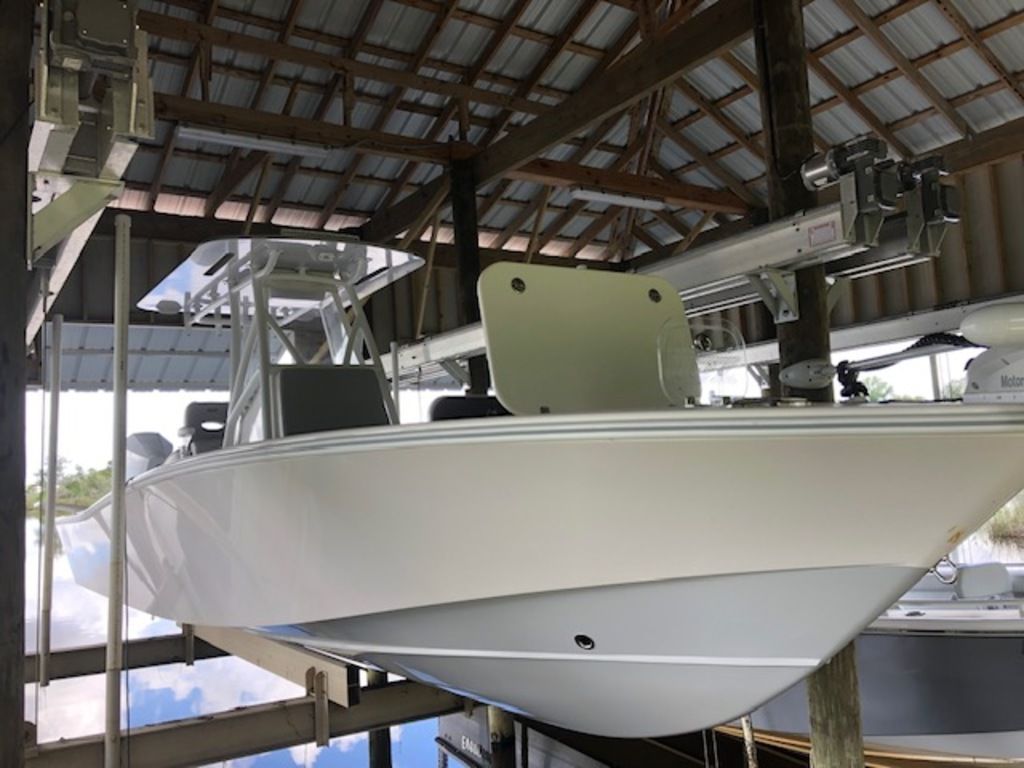 -T-Top White powdered coated frame with light grey hard top with 3 black oak spreader lights and 1 black oak light bar