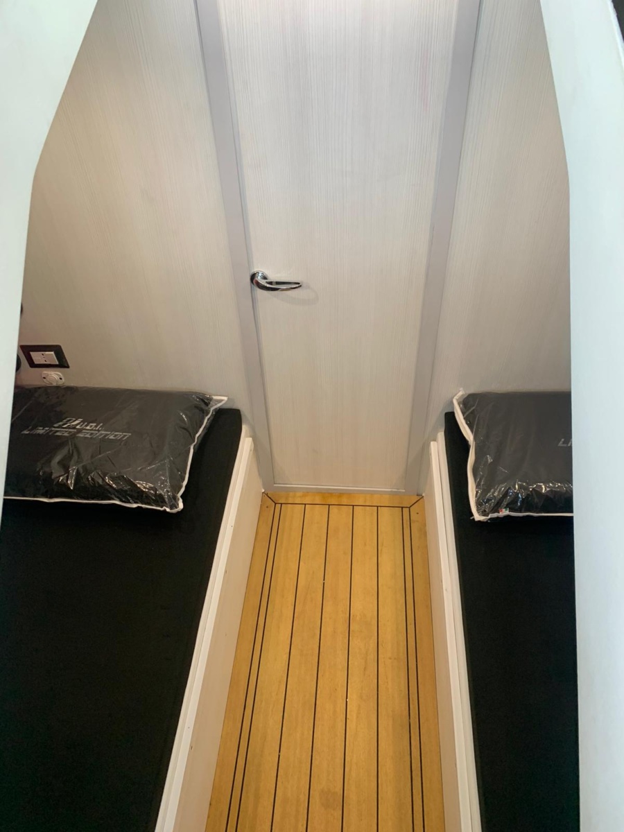 One of the standout features of the Panamera PY 100 is its cozy cabin, complete with a bathroom and shower, making it ideal for overnight stays. The two twin beds can be combined to form a comfortable queen-sized bed, and the option to add air conditioning ensures maximum comfort.