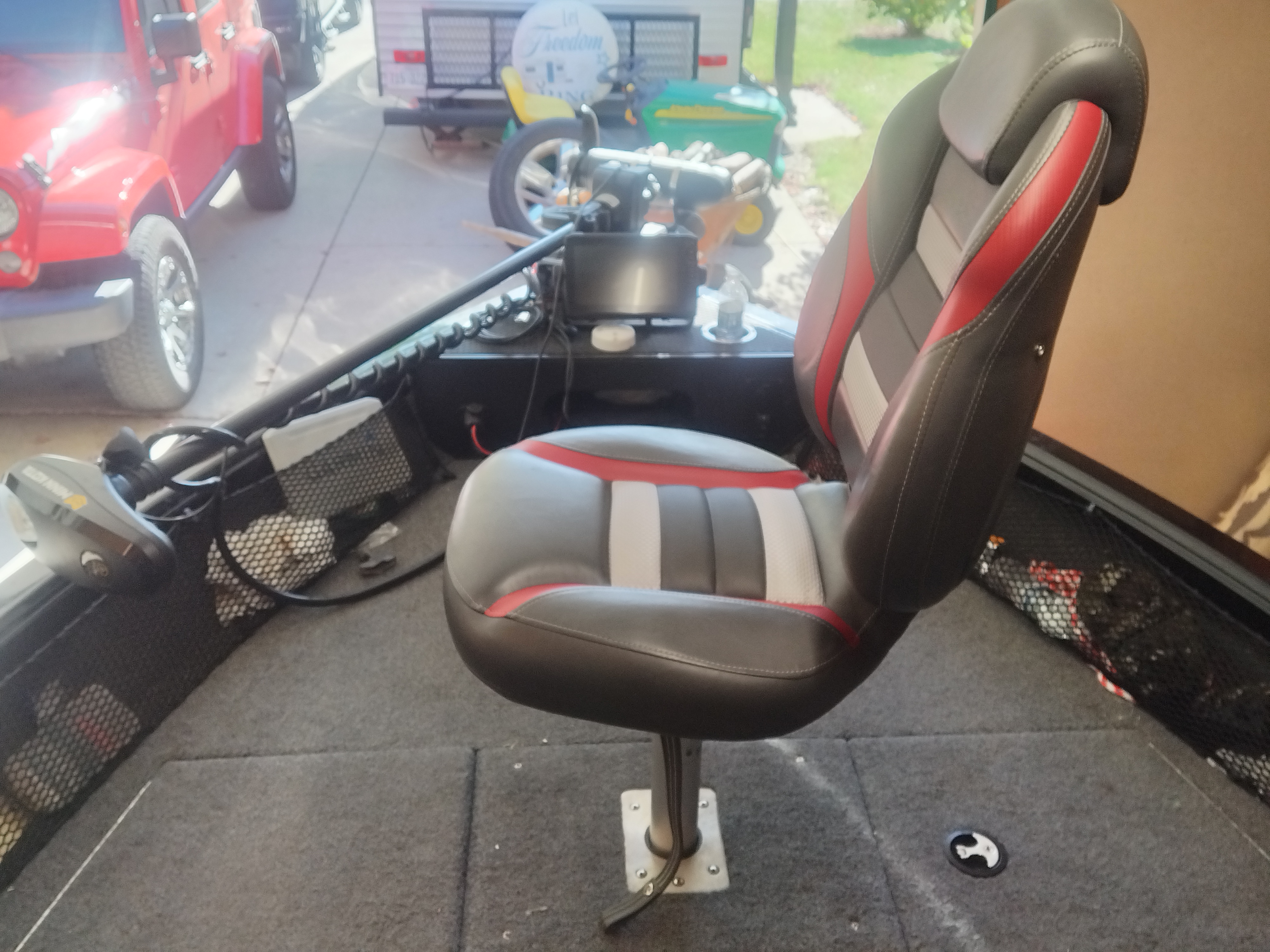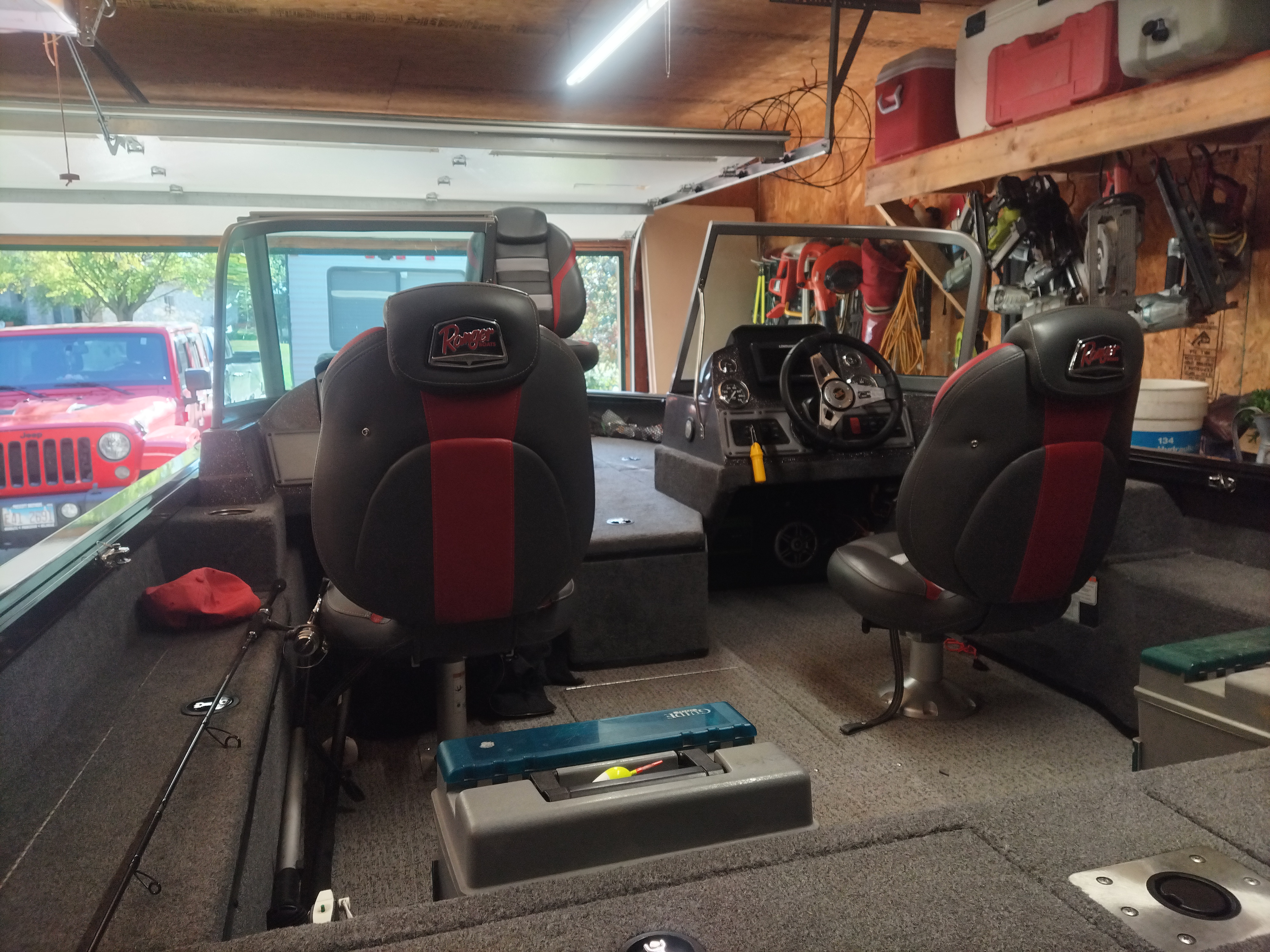 carpet floors on the front and rear casting decks, vinyl floor in the cockpit,
