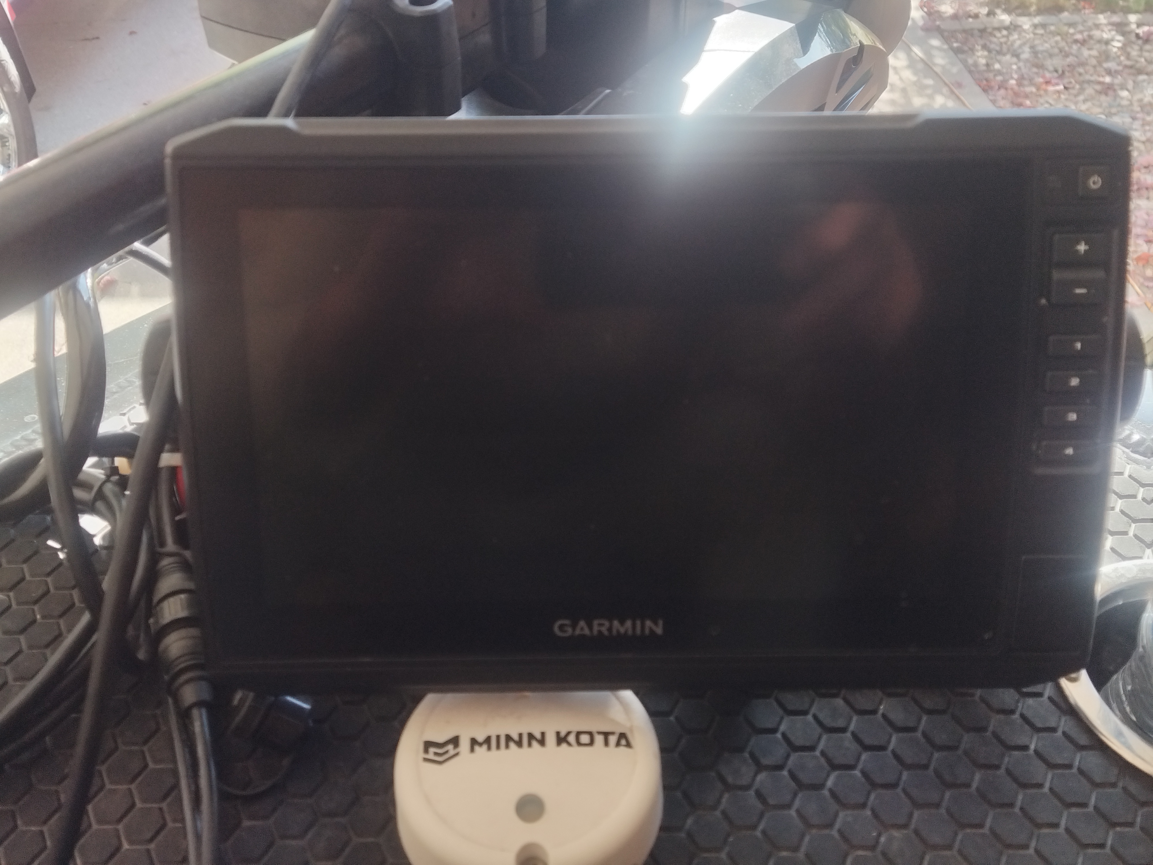 Lowrance Hook 7 at the console, Garmin SV93 on the bow,