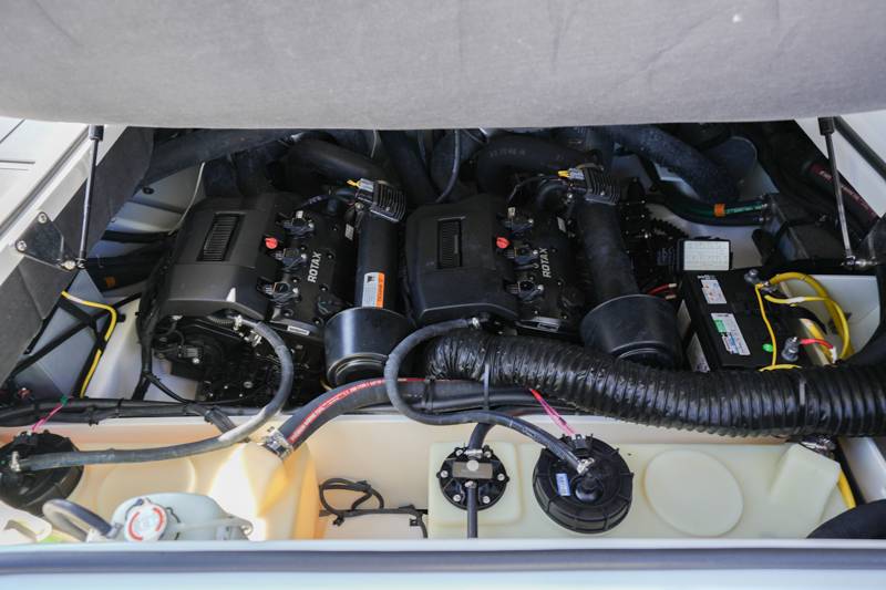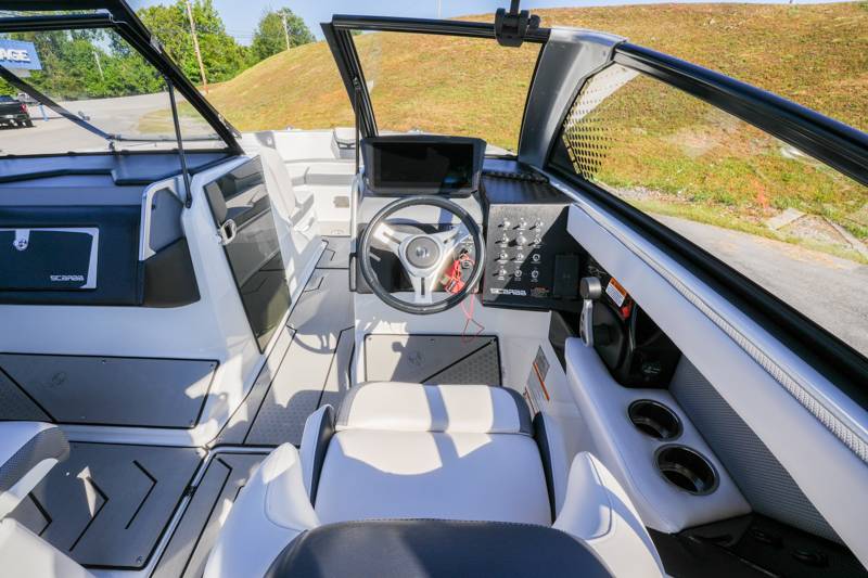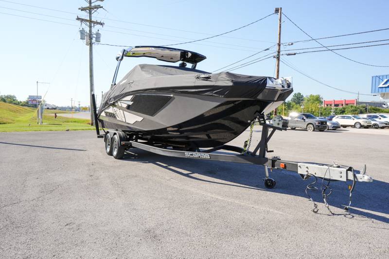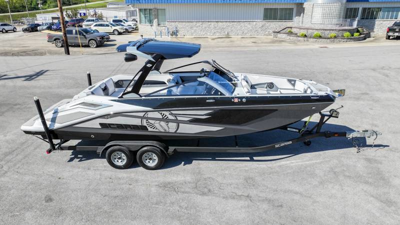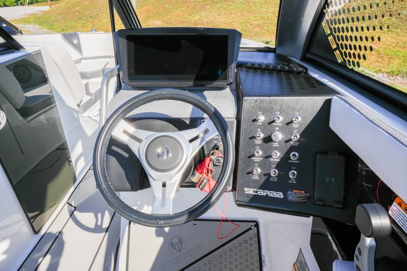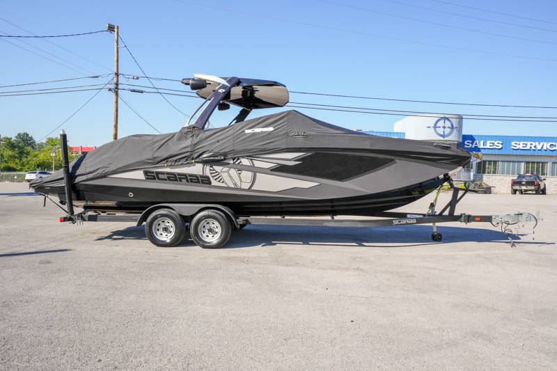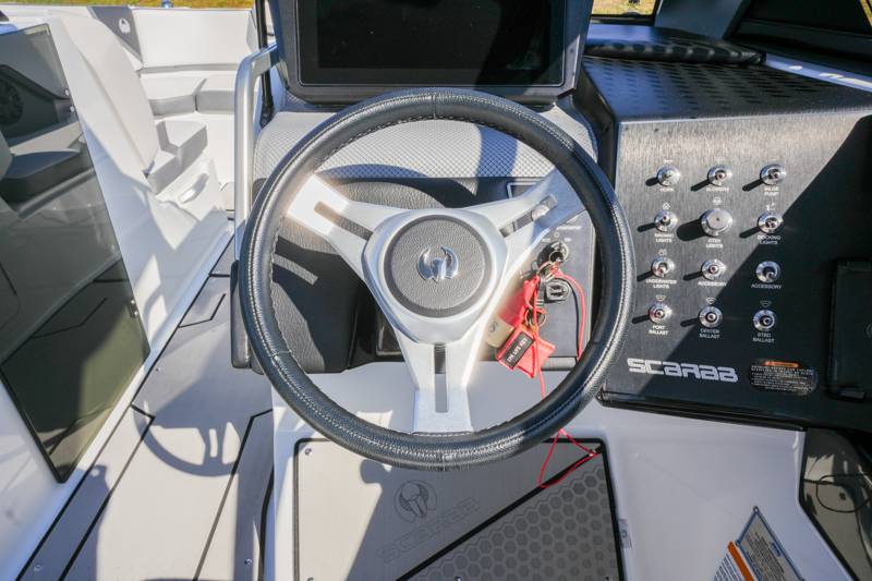 2021 Scarab 285ID Length: 28ft Beam: 9'2" Draft: 20" Fuel Capacity: 98gal Water Capacity: 12gal Dry Weight: 5,750lbs HP: 600HP Deadrise at Transom: 22 Degrees Hull Material: Fiberglass Drive Type: Jet Engine: Twin Rotax Features: Intelligent Neutral and Reverse Lateral Thrust Control Sound Dampening Kit Premium Sound System Wakeboard Tower Wake Ballast System Wakeboard racks