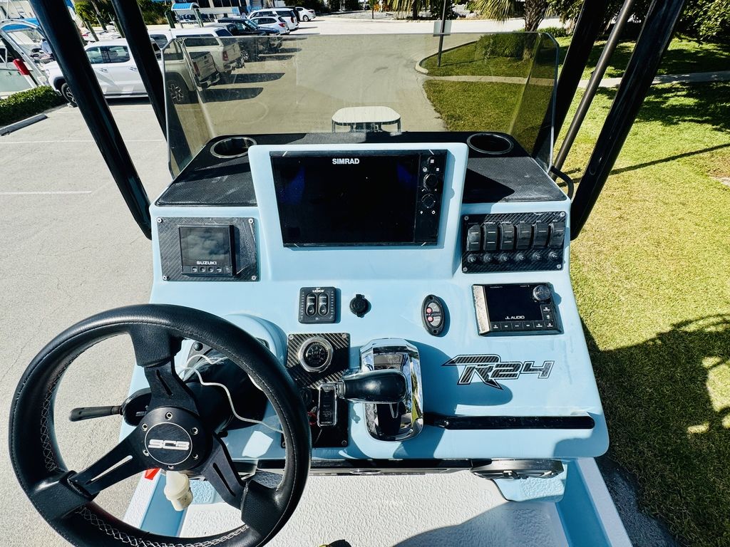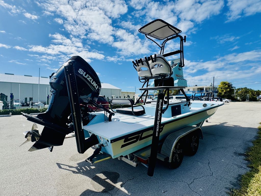 The SCB 24 Recon is a purpose-built performance bay boat engineered for anglers and boaters who demand shallow-water capability, offshore confidence, and everyday versatility. From stalking fish across the flats at sunrise to cruising comfortably to the sandbar or nearshore reefs, the 24 Recon is designed to excel in a wide range of conditions. Powered by a Suzuki 300 HP outboard with 150 hours, this boat delivers strong hole-shot, efficient cruising, and confident top-end performance.