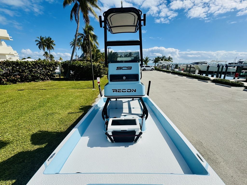 With a hull length of approximately 24 feet and a wide, stable beam, the SCB 24 Recon offers an ideal balance of shallow draft and offshore-ready ride quality. Built using advanced composite construction and premium materials, the hull is designed for durability, rigidity, and a smooth, dry ride. Every detail—from high-quality gelcoat finishes to stainless-steel hardware—reflects SCB’s commitment to performance, longevity, and clean, functional design.