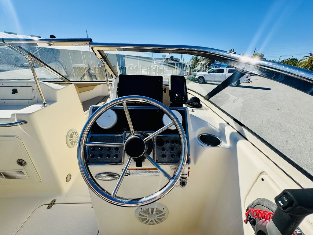 Powered by a Mercury 150 FourStroke with 1,233 hours, this setup offers reliable performance, smooth throttle response, and efficient cruising. With a hull length of approximately 21’0”, a beam of 8’6”, and a draft of approximately 14”, the 210 Dorado is trailer-friendly while still delivering the solid offshore ride Scout is known for. Built using Scout’s NuV3® composite construction and infused hull technology, the boat provides superior strength, reduced weight, and a quiet, dry ride. Every detail — from the high-gloss gelcoat finish to the stainless-steel hardware — reflects Scout’s commitment to premium quality and long-term durability.