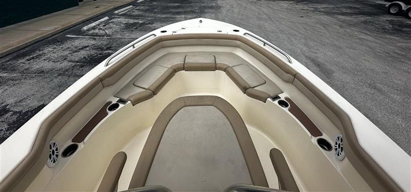 Brand new Mercury 200L motor! The 215 XSF is built on Scout’s revolutionary fuel saving NuV3 hull design, while the deck offers ample standard amenities for everything from serious fishing to comfort cruising. Built with 100% hand-laid fiberglass, the boat boasts a wide comfortable beam of 8’ 6” with an overall length of 21’ 6”. A notable standard feature onboard the 215 includes not only the forward seating in the bow, but also a forward sun lounge/coffin box complete with a cushion. Price shown does not include trailer.