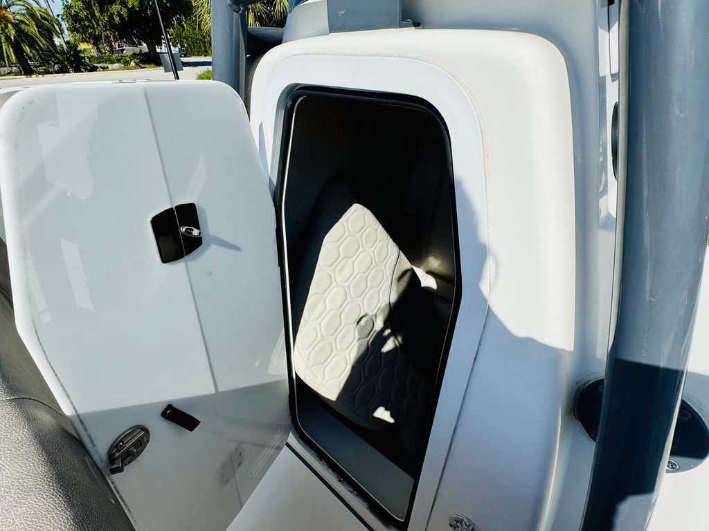 - Storage - transom walk-thru compartment for beach anchor or drainable insulated cooler