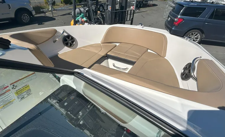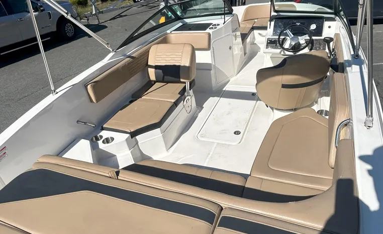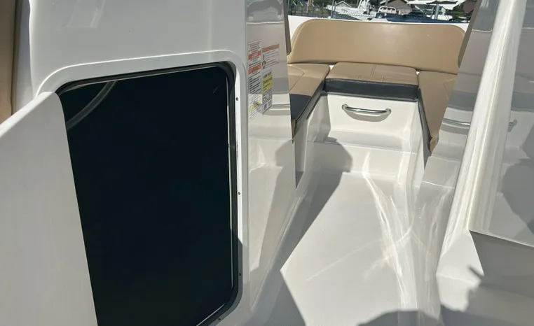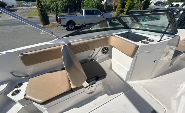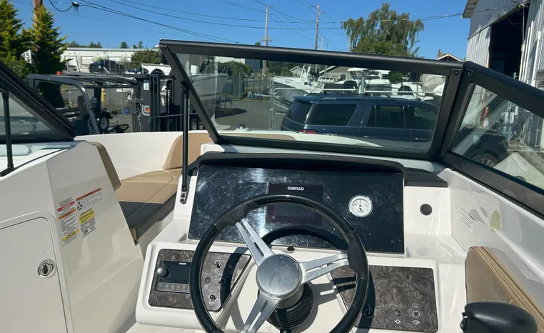 Electronics & Entertainment: Navigate easily with the 7" Simrad Digital Dash, which provides essential vessel information. Keep the good times rolling with the integrated Fusion stereo system, perfect for enjoying your favorite tunes on the water.