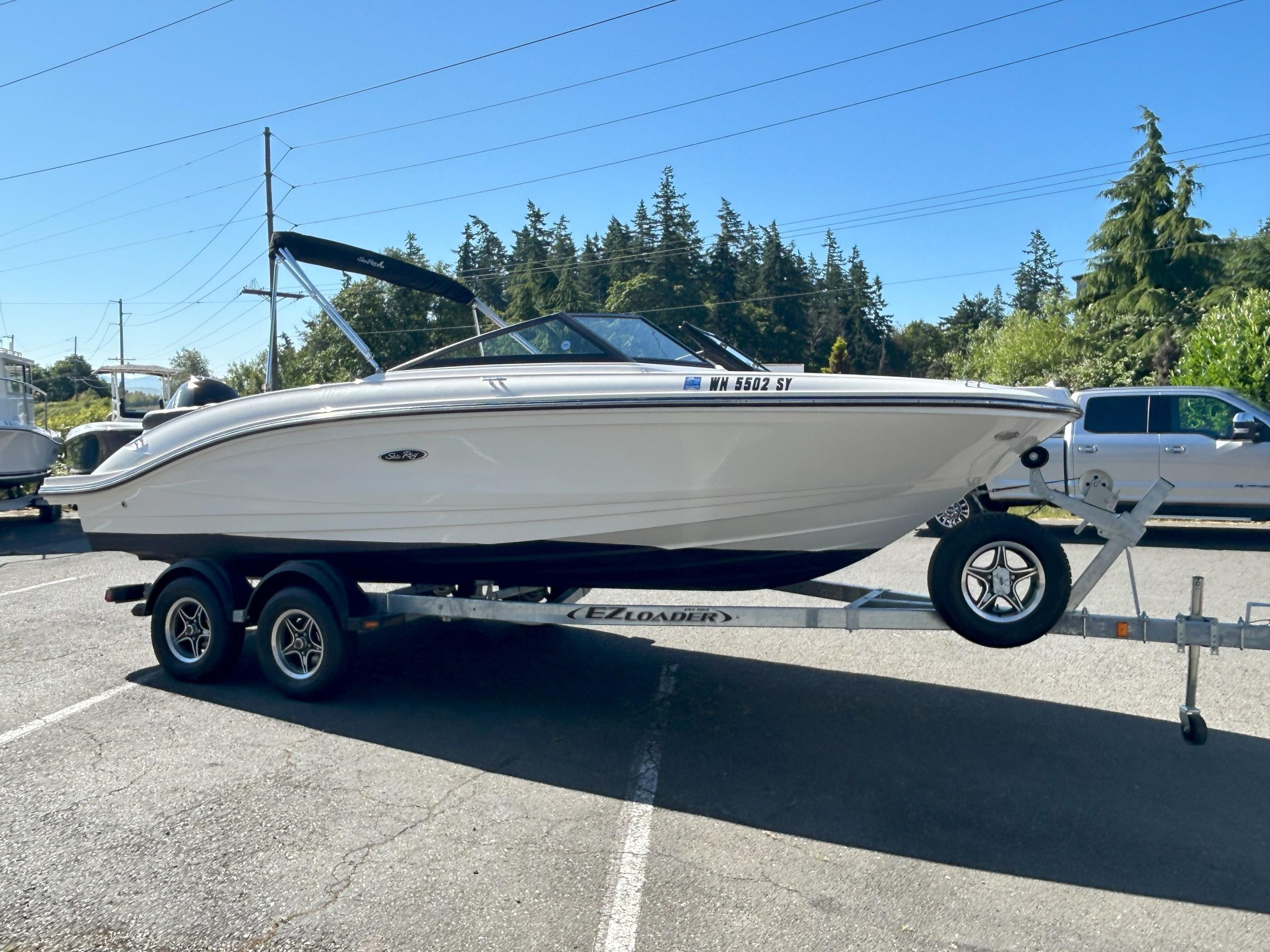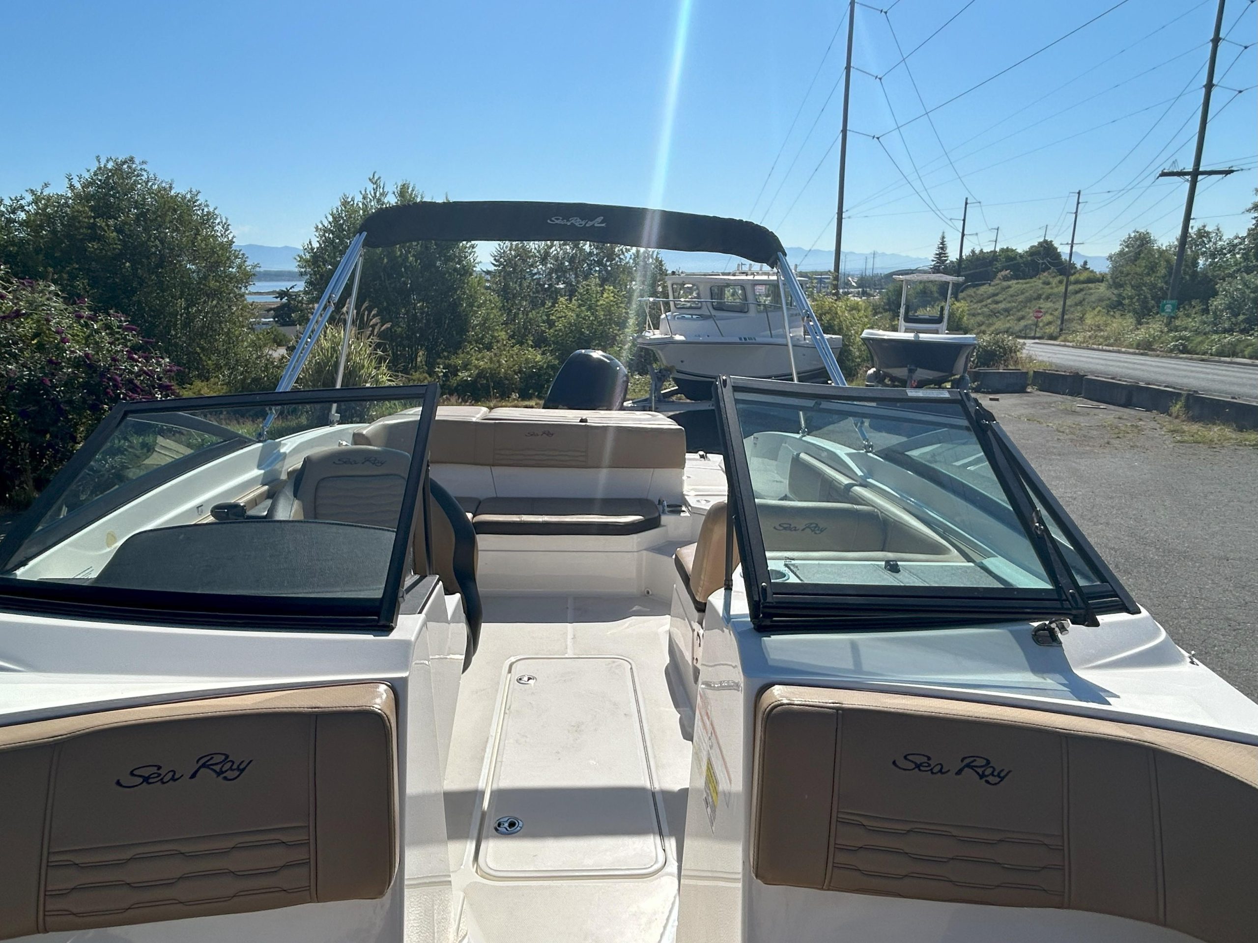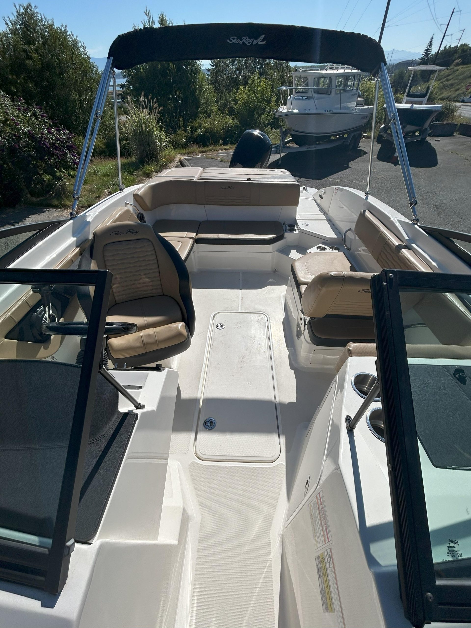 Comfort & Layout: Enjoy spacious bow seating and a versatile cockpit featuring L-shaped bench seating and a convertible transom sun pad with an aft-facing backrest. An integrated swim platform with a 4-step ladder makes re-boarding simple. The interior maintains its classic Sea Ray comfort, without special flooring or seat upgrades.