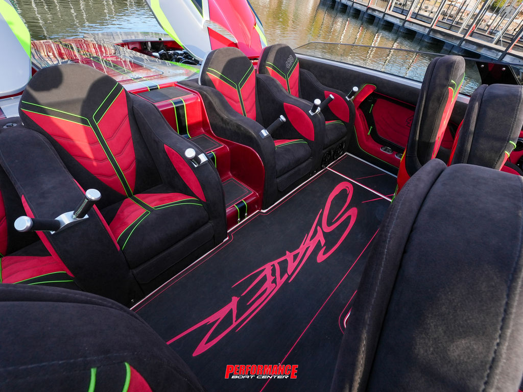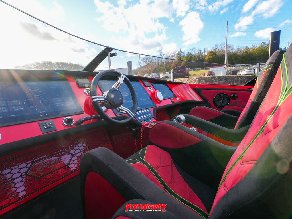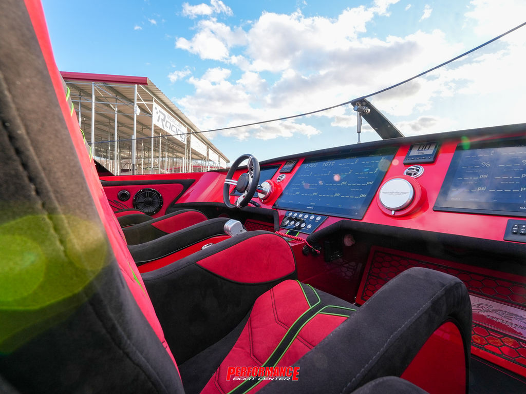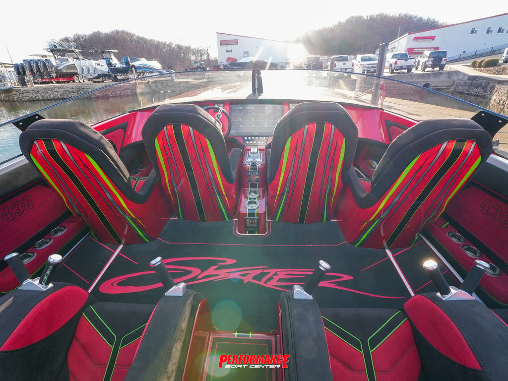 2021 Skater 438 Powered by Mercury Racing QC4V 1100/1350s with 46 hours and M8 Drives, 8 Seat Cockpit configuration, Dual Helm Configuration, Full Alcantera Interior, 3 Garmin GPS Chart plotters on the dash, Dash Blowers, Tiger Performance Headsets, Seadek Flooring, Rear view Camera, Accent Lighting throughout, Cockpit Cover, Tilt Trailer Included, and much more!