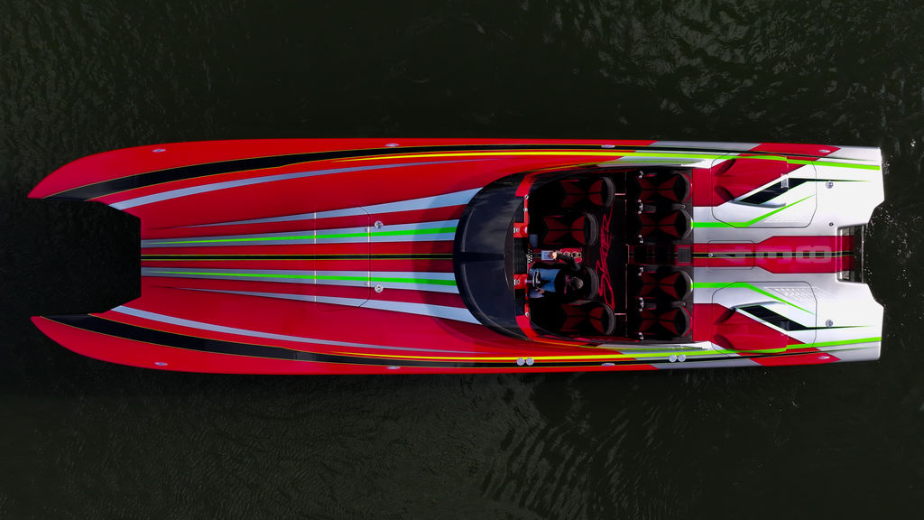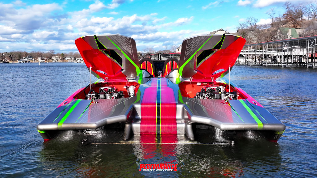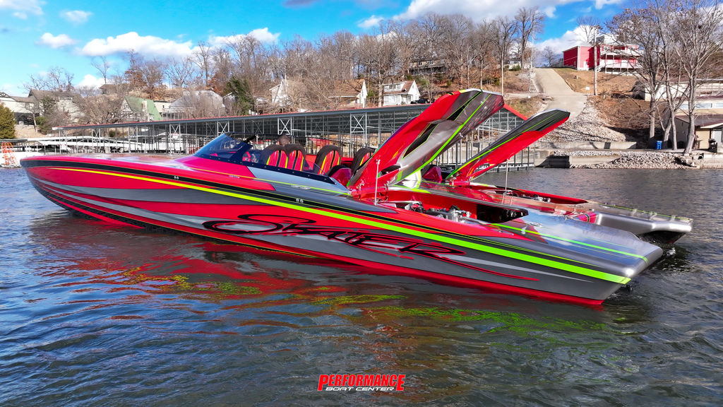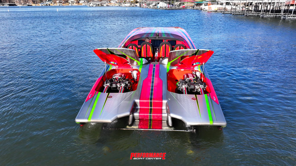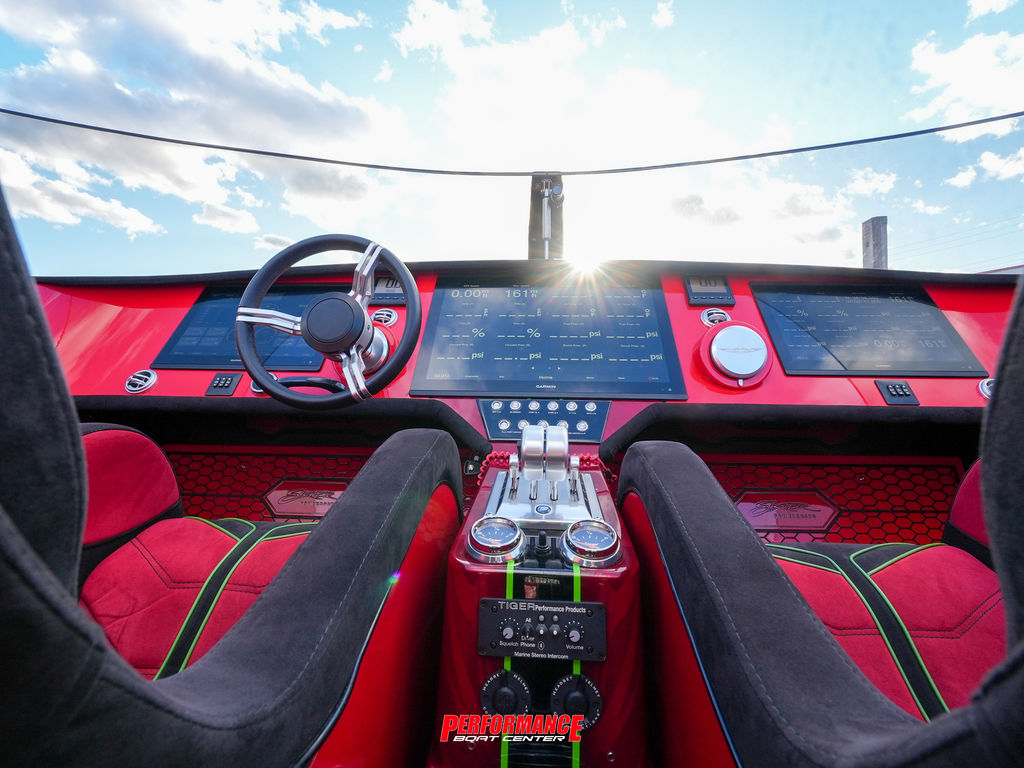 2021 Skater 438 Powered by Mercury Racing QC4V 1100/1350s with 46 hours and M8 Drives, 8 Seat Cockpit configuration, Dual Helm Configuration, Full Alcantera Interior, 3 Garmin GPS Chart plotters on the dash, Dash Blowers, Tiger Performance Headsets, Seadek Flooring, Rear view Camera, Accent Lighting throughout, Cockpit Cover, Tilt Trailer Included, and much more!
