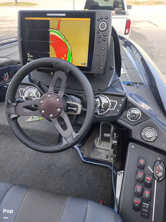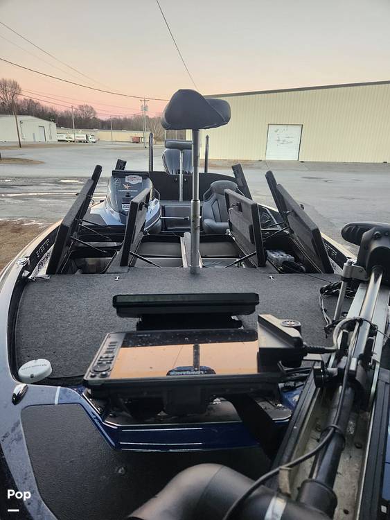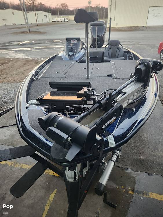 Features a Minn Kota Ultrex 36v trolling motor, 2 Humminbird and 1 Lowrance units, two power poles, two live wells and plenty of storage. It also has a full boat cover for added protection.