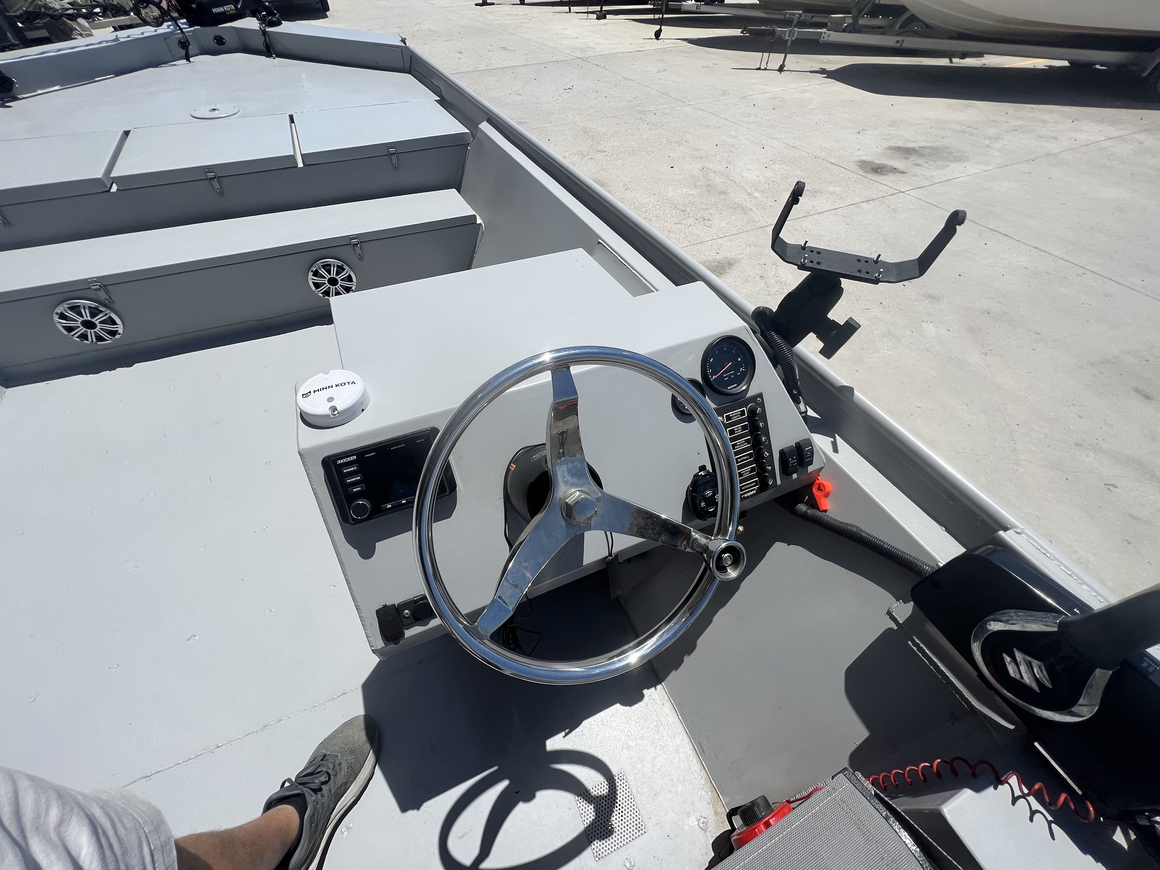 Solid aluminum 20X72 TANK powered with a Suzuki 150 hp. Four-Stroke. Boat is loaded to the Gills.