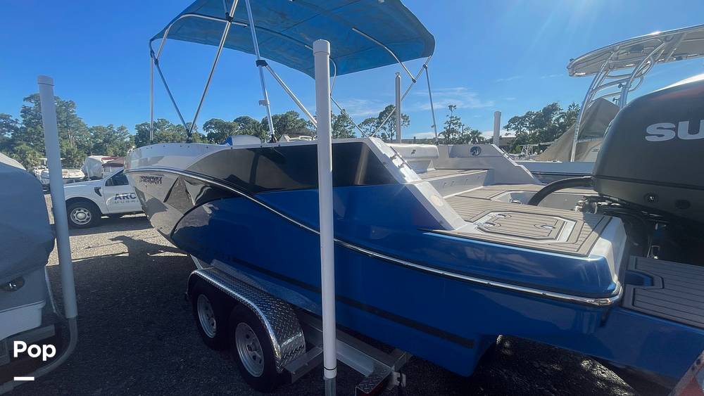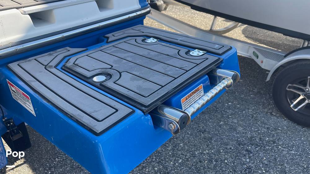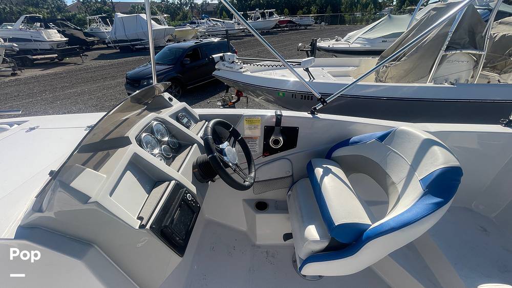 This beauty shines with a sleek Blue hull, snap-in marine carpet, and standard features like a Fusion Bluetooth stereo, bimini top, and 4-step swim ladder. The helm offers a fish finder and USB ports. Weighing ~3,200 lbs (4,200 lbs with engine), it's perfectly paired with the trailer for easy towing.
