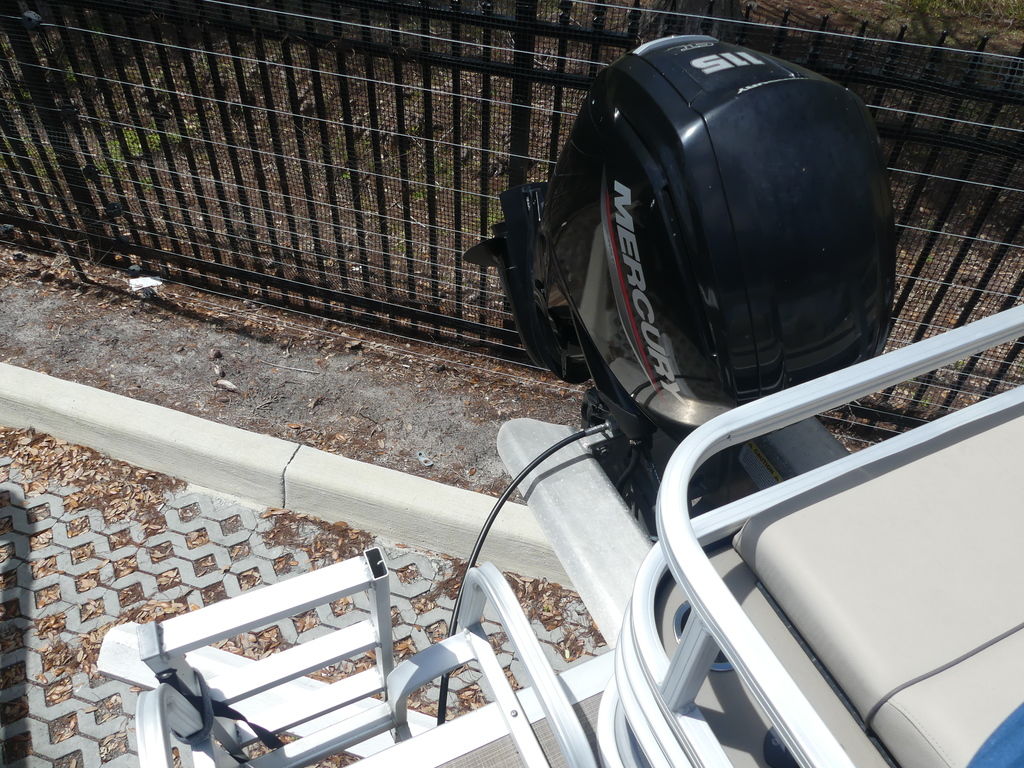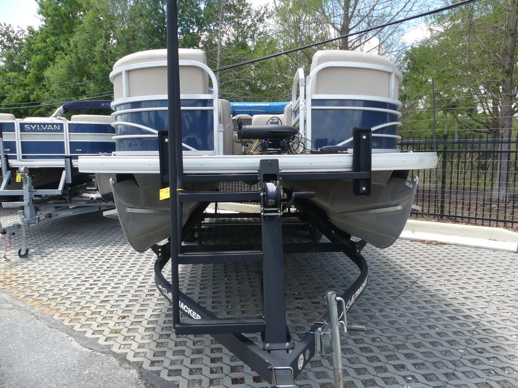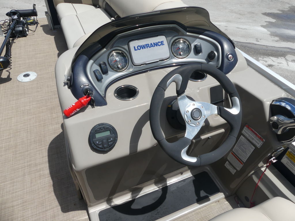 This Sun Tracker Fishin’ Barge® 22 DLX comes equipped with a variety of features designed to enhance both comfort and functionality. Dedicated fishing stations with swivel fishing chairs provide excellent positioning for anglers, while rod holders and storage compartments keep gear organized and within reach. A livewell supports bait management for productive fishing trips, while the spacious deck layout ensures plenty of room to move around safely. Comfortable lounge seating throughout the boat allows for relaxing cruises, and a Bimini top provides shade on sunny Florida days. Additional highlights often include a user-friendly helm with clear gauges, ample storage for gear and supplies, and a swim ladder for easy water access—making it perfect for both family boating and casual fishing adventures.