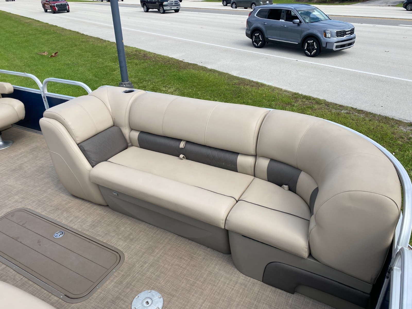 The PARTY BARGE 22 XP3 offers everything from four lounge seats to the new 10' Bimini top to swim platform to the new stereo and more. All that, combined with things like three inward-swinging gates, padded woven flooring and cooler storage, ensures this pontoon boat is ready for a full day of fun. Then, it adds in the XP3 performance package, which includes three 26” pontoon logs with lifting strakes, underpinning and hydraulic steering to raise the horsepower rating to 200 and provide the performance needed for tubing and cruising! The XP3 package also includes in-deck storage, perfect for stowing watersports gear.