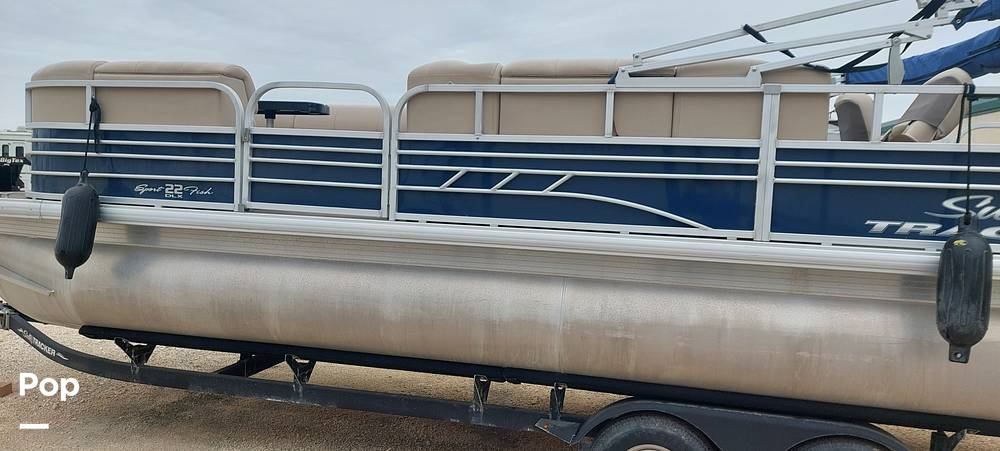 The pontoon has a full cover and comes with a trolling motor. The bunker-style trailer is in great shape and has low miles.