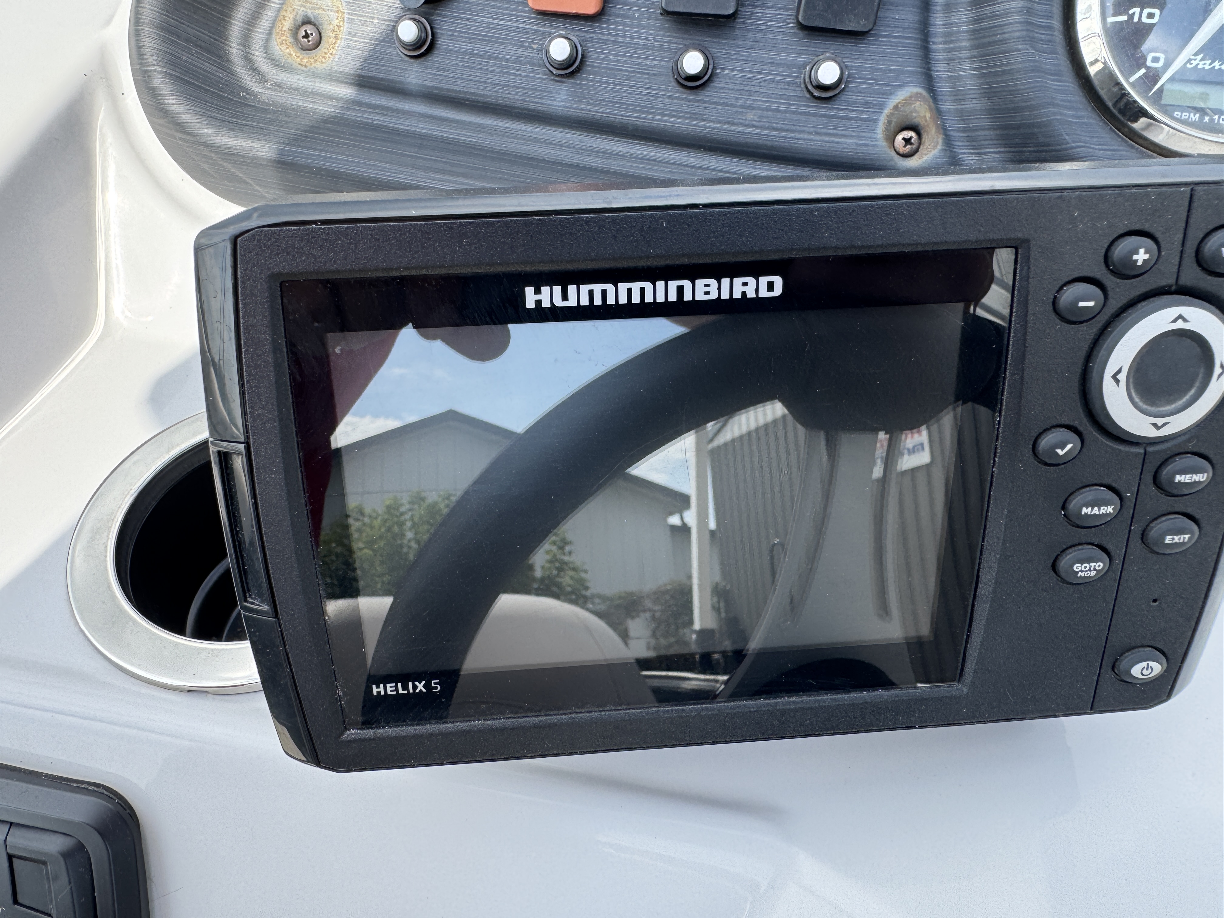 Trim gauge. There is a Humminbird Helix 5 GPS depth/fish finder mounted on the