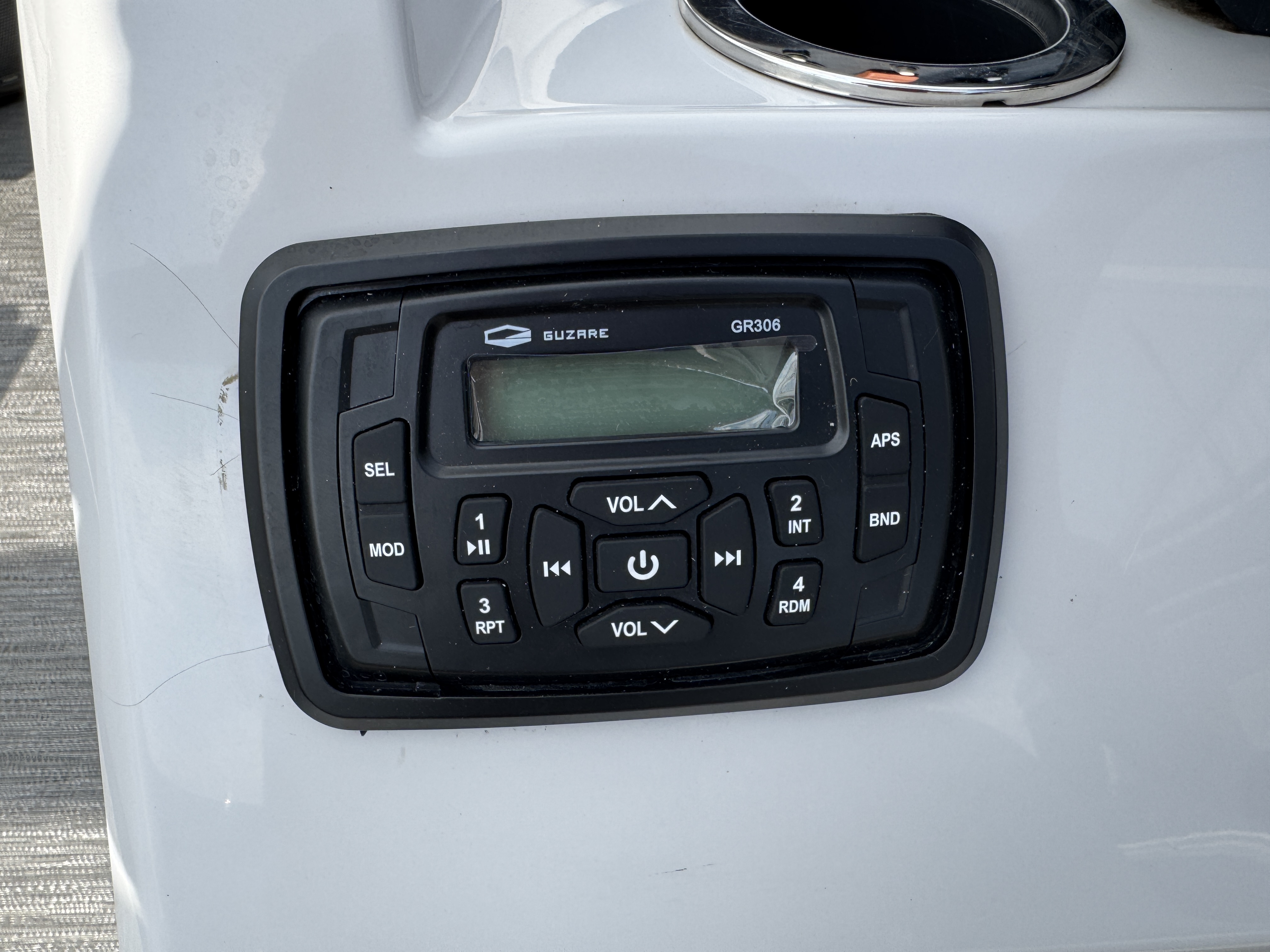 helm. There is a Guzare Bluetooth audio stereo system. There are large swim