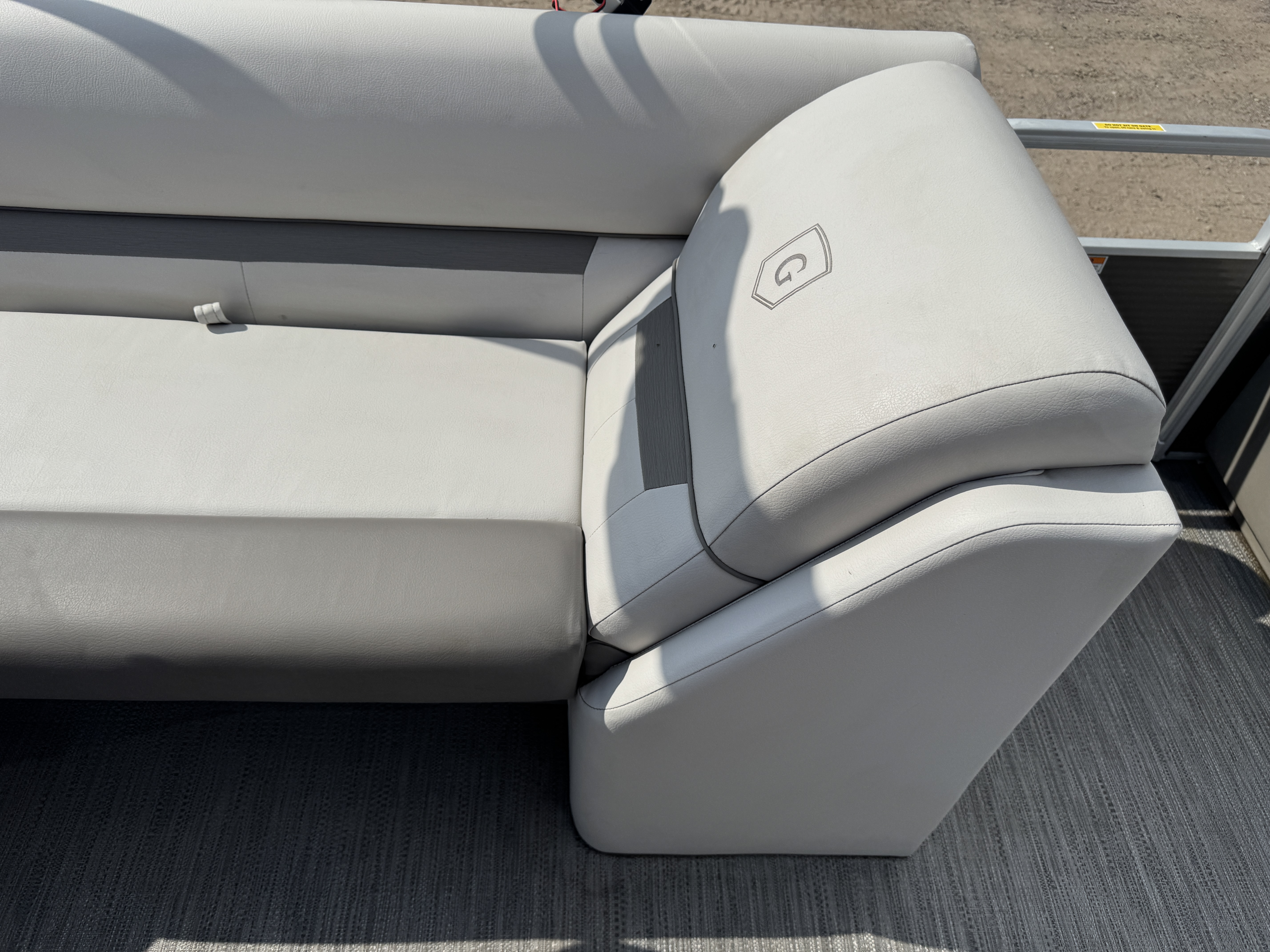 cruise model pontoon features 2 couches in front with an L-shaped couch in the