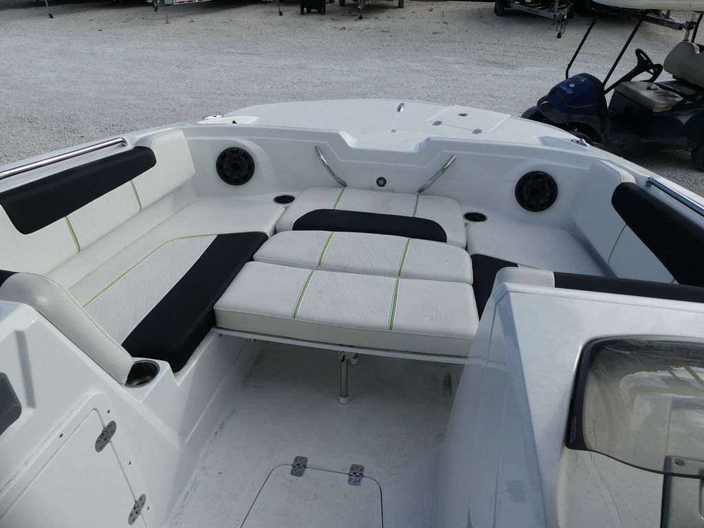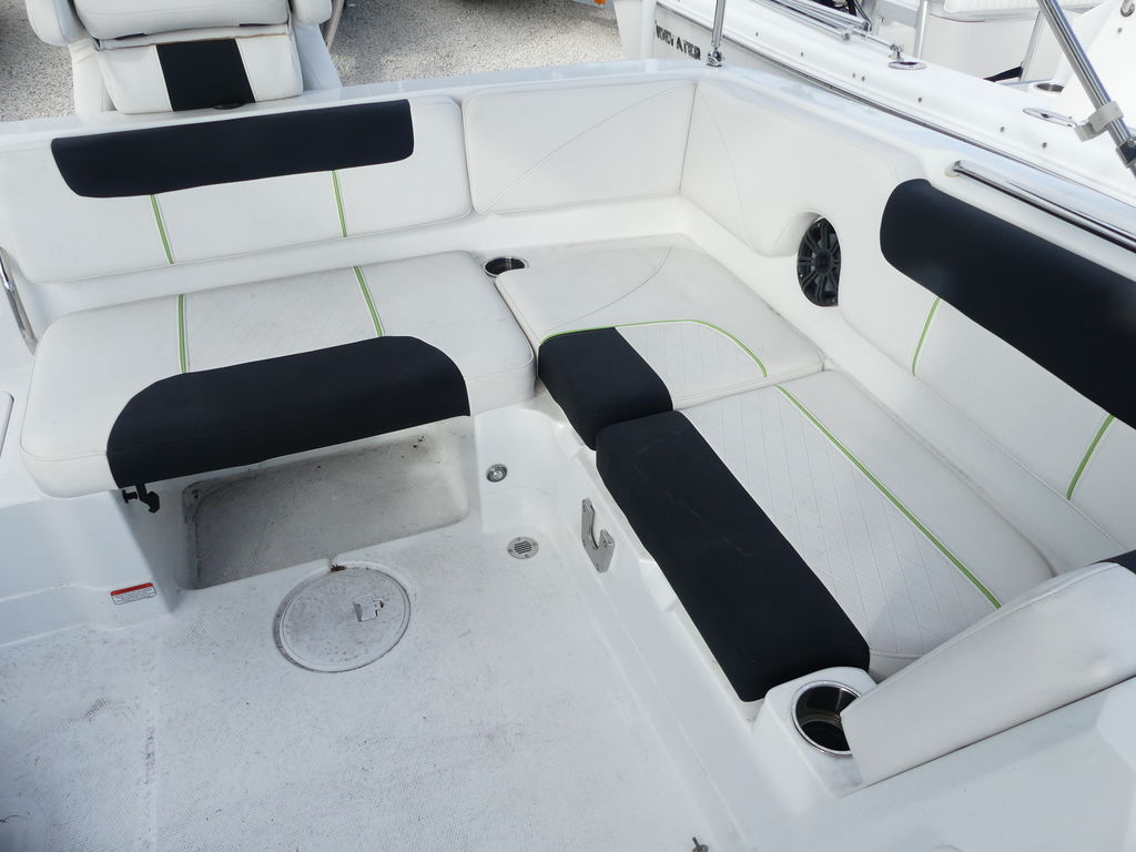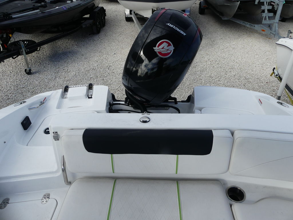 Just load up the crew (there’s room for 10 total!) and all their gear, crank up the throttle and enjoy the power supplied by the Mercury® outboard (it's rated for up to 175HP!) as you set a course for away. At your destination, the lounge seating throughout is perfect for lounging away the day (under the standard Bimini or in the sun at the bow, your call). You can even set up the table for a picnic!