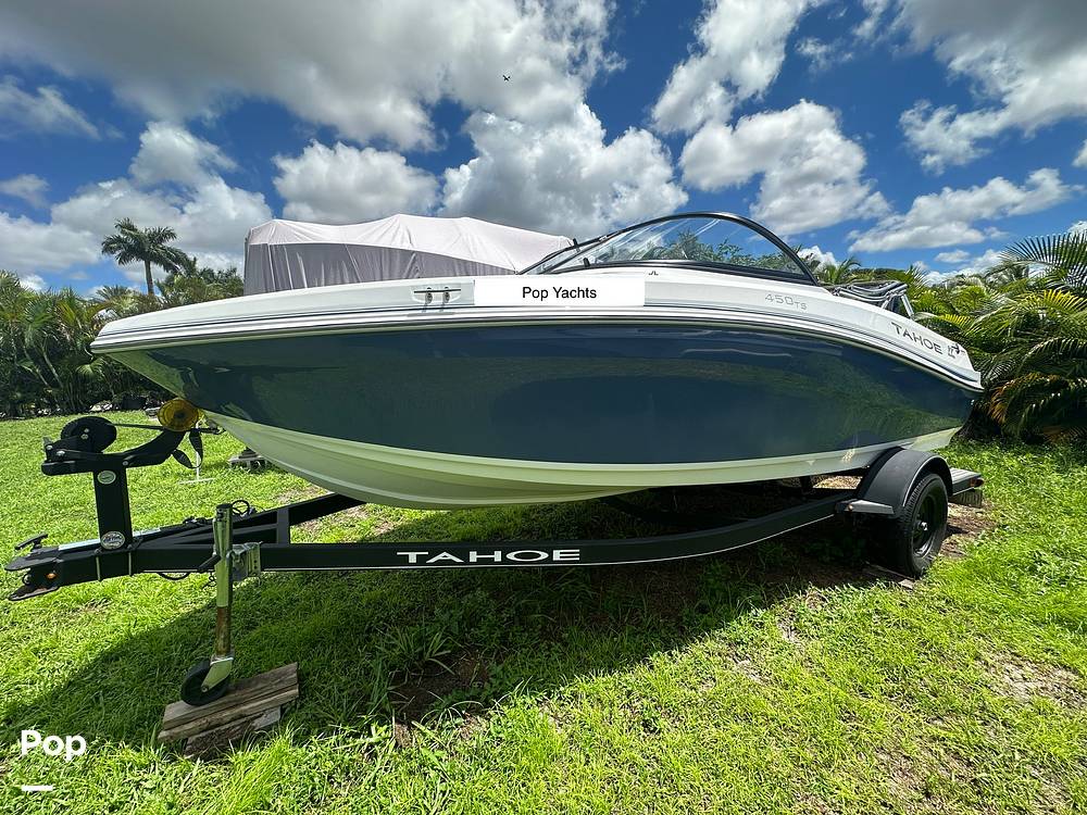 Inside, you'll find comfortable seating with marine-grade upholstery, ample storage for your gear, and a well-designed helm with easy-to-read gauges. The swim platform and ladder make it simple to hop in and out of the water, while the open bow design provides additional seating and lounging space. With its combination of style, performance, and practicality, this Tahoe 450 TS is a fantastic choice for anyone looking for a versatile, lightly used boat that's ready to hit the water.