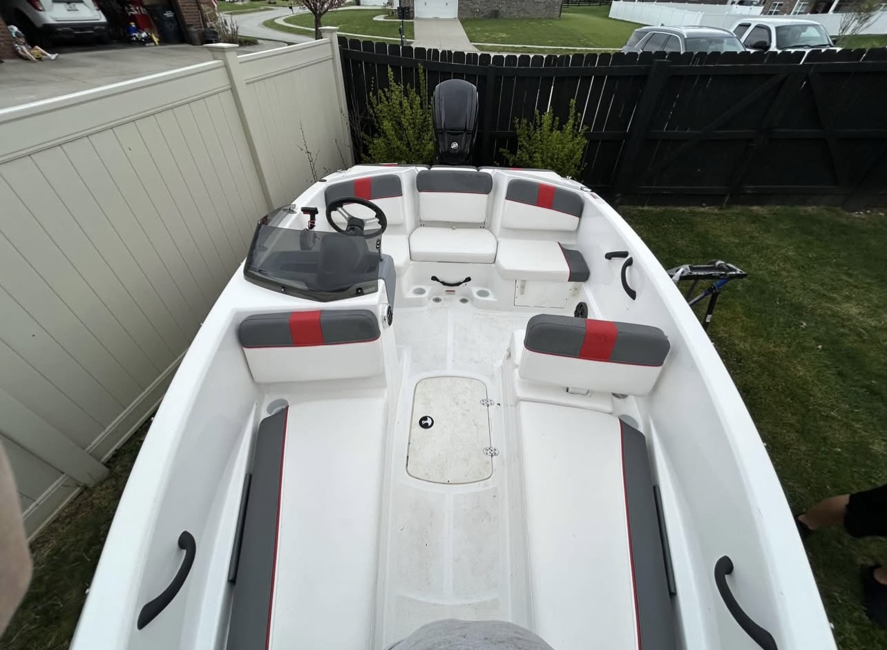 Like-new runabout ready for the water! Used only 15–20 times since new. Perfect for family fun, tubing, fishing, or cruising the river.