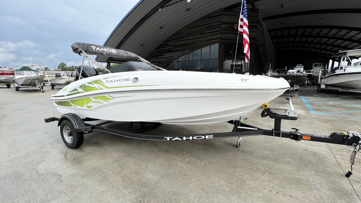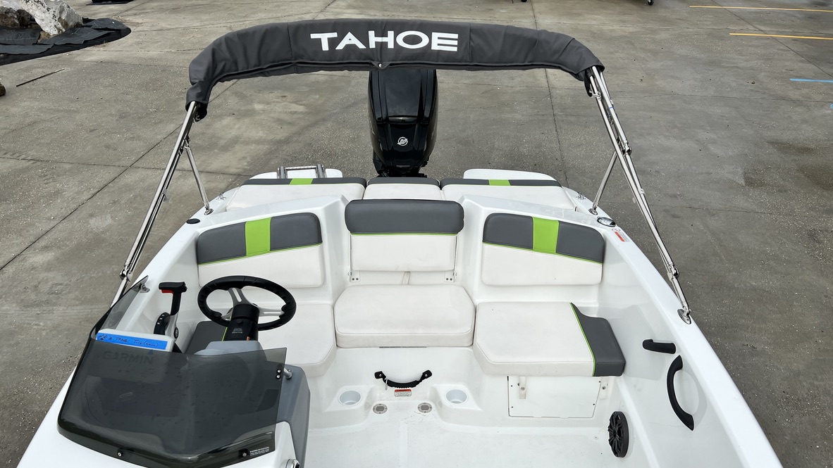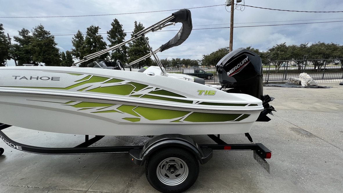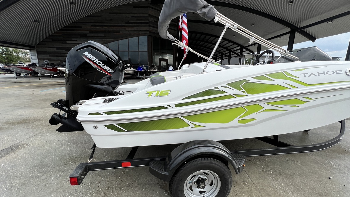 The TAHOE® T16 is fully loaded and priced to deliver huge returns of fun and excitement. A new 7” touchscreen multifunction display is standard and displays your GPS-accurate speed, the water depth, as well as your motor’s vitals. Inside, creature comforts abound in the form of twin forward lounges with ample underseat storage, and out back you’ll a sun pad and a FourStroke Mercury outboard for spirited and economical performance. Rounding out the package is a custom-built trailer for years of on-road peace of mind.