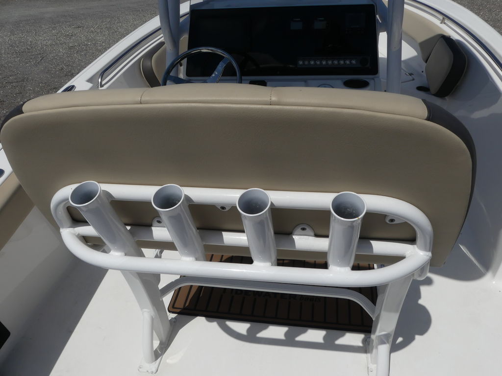 The NEW 220 LXF is loaded with comfortable full upholstery and stainless steel cup holders. The newly designed console, with glove box and footrest, includes catch-all trays in front and on top. Large rear seat with a new walk through transom door, all standard. Family friendly bow seating makes the new 220 LXF a luxurious refined boat.