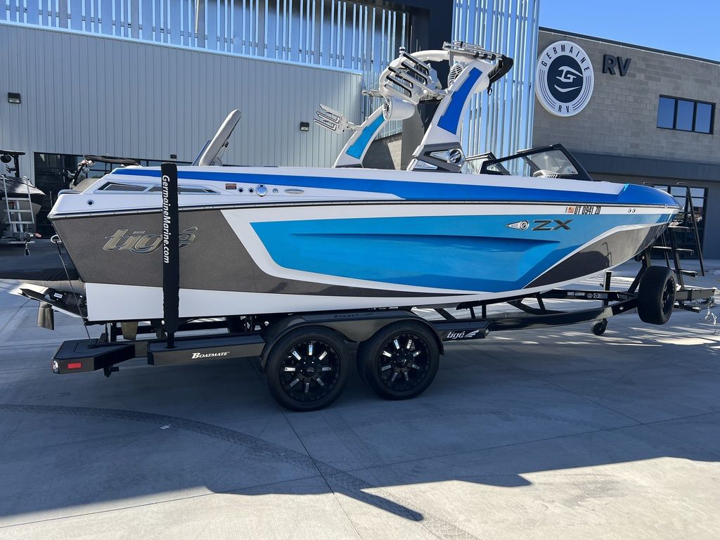 2021 Tige 23ZX with only 200 Hours! Boat's Location is Mesa, Arizona Call or Text (480)655-9055 for more Info! This 23ZX is equipped with the following! Supercharged 575 motor - Tandem Boatmate Trailer - PTM Clamp Racks - Bimini - Protect-All Cover - RGB LED's - Surf Locker - Surf Exhaust - Flip Over Seat - CoolTouch Upholstery - Four Vent Heater!