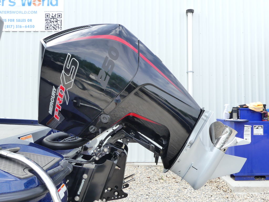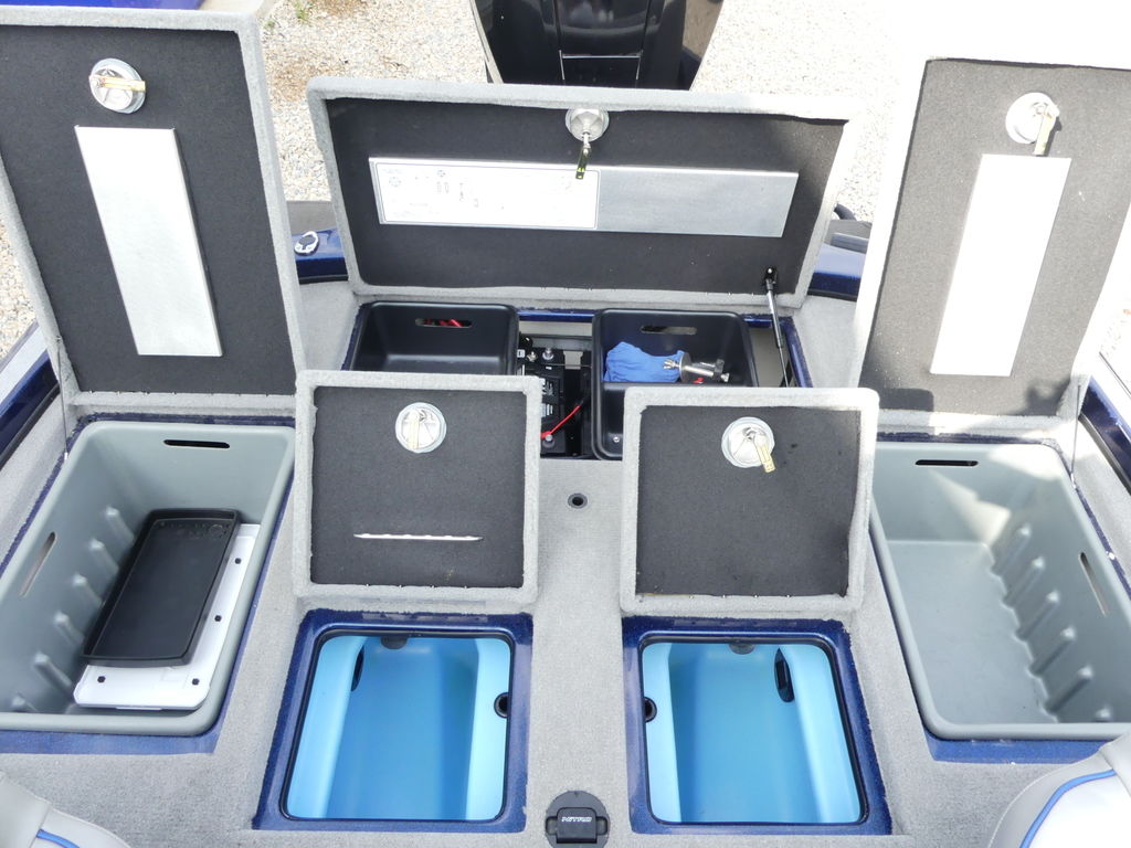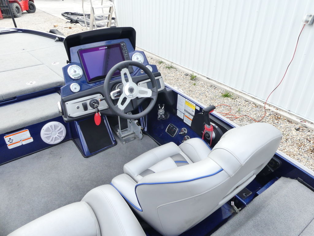 The advanced console is equipped with a touchscreen control panel, allowing one-touch access to key functions such as livewell operation, lighting, bilge, and trim. A factory-installed fishfinder and hydraulic steering system enhance navigation and fish tracking on the water.