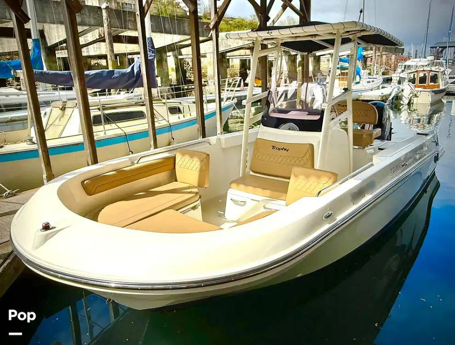 This versatile Trophy T22CC perfectly balances family comfort with serious fishing capability. The premium T-top provides excellent protection from the elements, while the thoughtfully designed seating arrangement includes forward seats with backrests and dual flip-up transom seats, ensuring comfortable accommodation for family and guests.