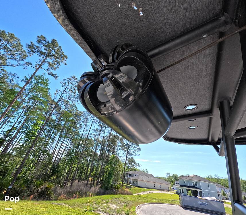 This well-kept boat has forward seating, jump seats, and a leaning post, along with a lockable glove box, console compartment, anchor locker, and storage pods in addition to T-top rod holders, gunwale rod storage, and horizontal rod storage. An integrated swim platform with a stainless steel telescopic ladder is a great feature as well.