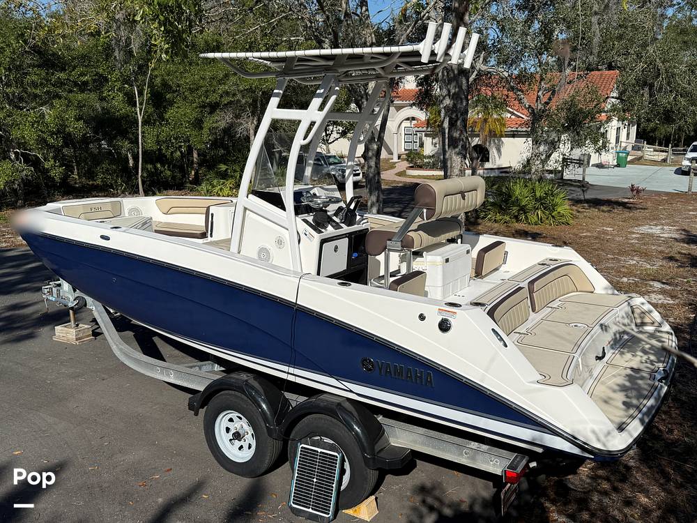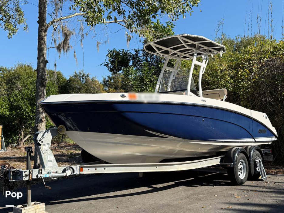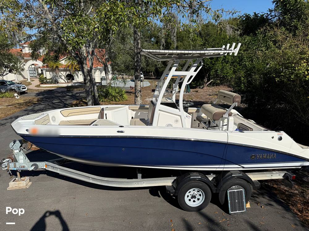 Located in Palm Harbor in the Tampa Bay, FL area, this 2021 Yamaha FSH 210 Sport is a versatile and well-equipped center console jet boat that is equally at home cruising with family and friends or chasing fish. Finished in an attractive blue hull with coordinating tan upholstery, this boat is in very nice condition and offers seating for up to 10 passengers in a thoughtfully designed, open layout.