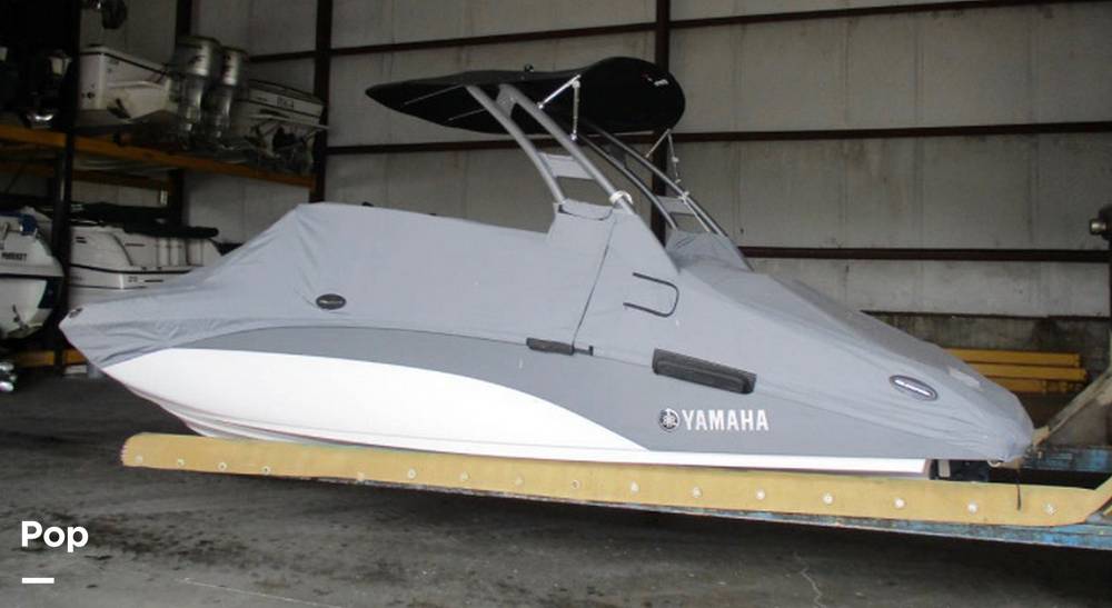 Overhead is a collapsable wake tower with a bimini top. This one comes with a Yamaha full cover and additional storage cover as well.
